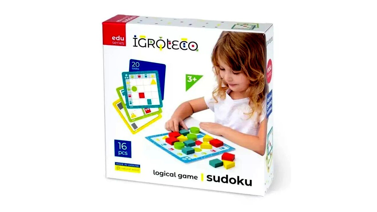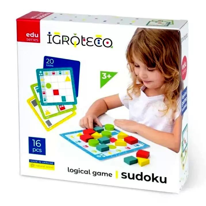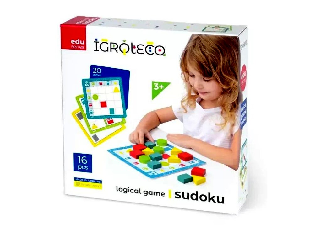 Ez a gyerekeknek készült sudoku jellegű logikai játék a mintázat- és szabálykövetés gyakorlását segíti színes, geometriai elemekkel és feladatkártyákkal. A készlet kézzelfogható, könnyen használható elemekre épül, így a feladatok játékos formában végezhetők.