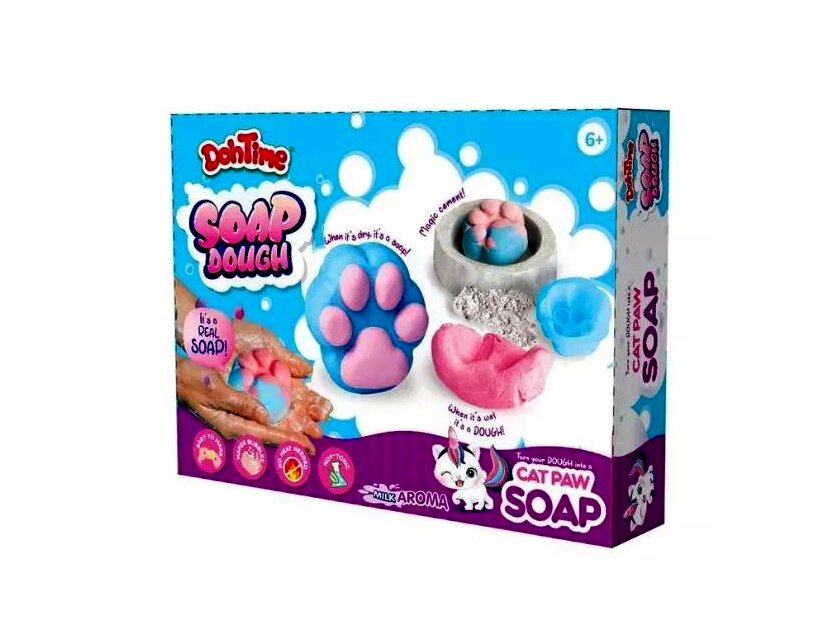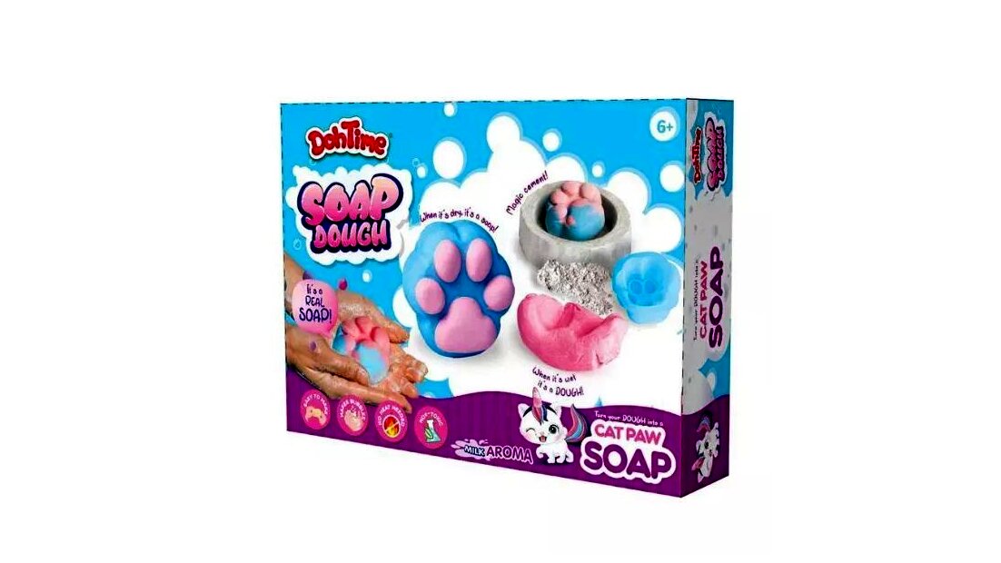 A Cica mancs szappangyurma egy 2 az 1-ben kreatív készlet: formázható „gyurma”, amely vízzel érintkezve szappanként is használható kézmosáshoz vagy fürdéshez. A játékos alkotás így könnyen a napi tisztálkodási rutin része lehet.