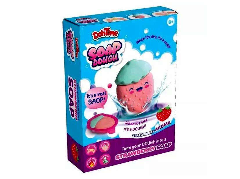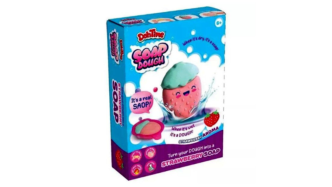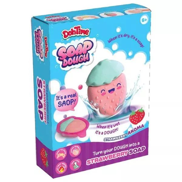 Az eper illatú szappangyurma egyszerre kreatív gyurmázós játék és praktikus tisztálkodó: a megformázott „alkotásokkal” kézmosás vagy fürdés közben finoman habzó szappanként használható.