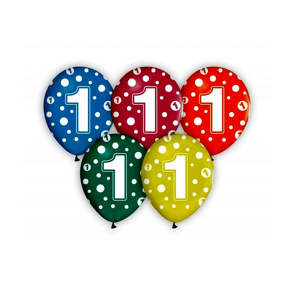 Színes, pöttyös számos lufi 5 darabos szett, 1