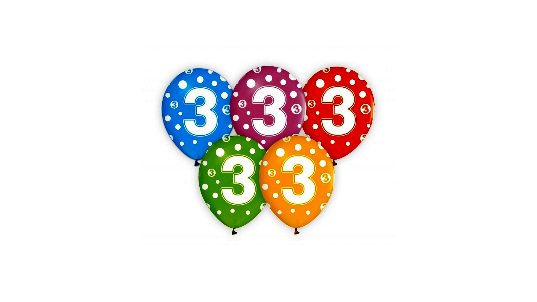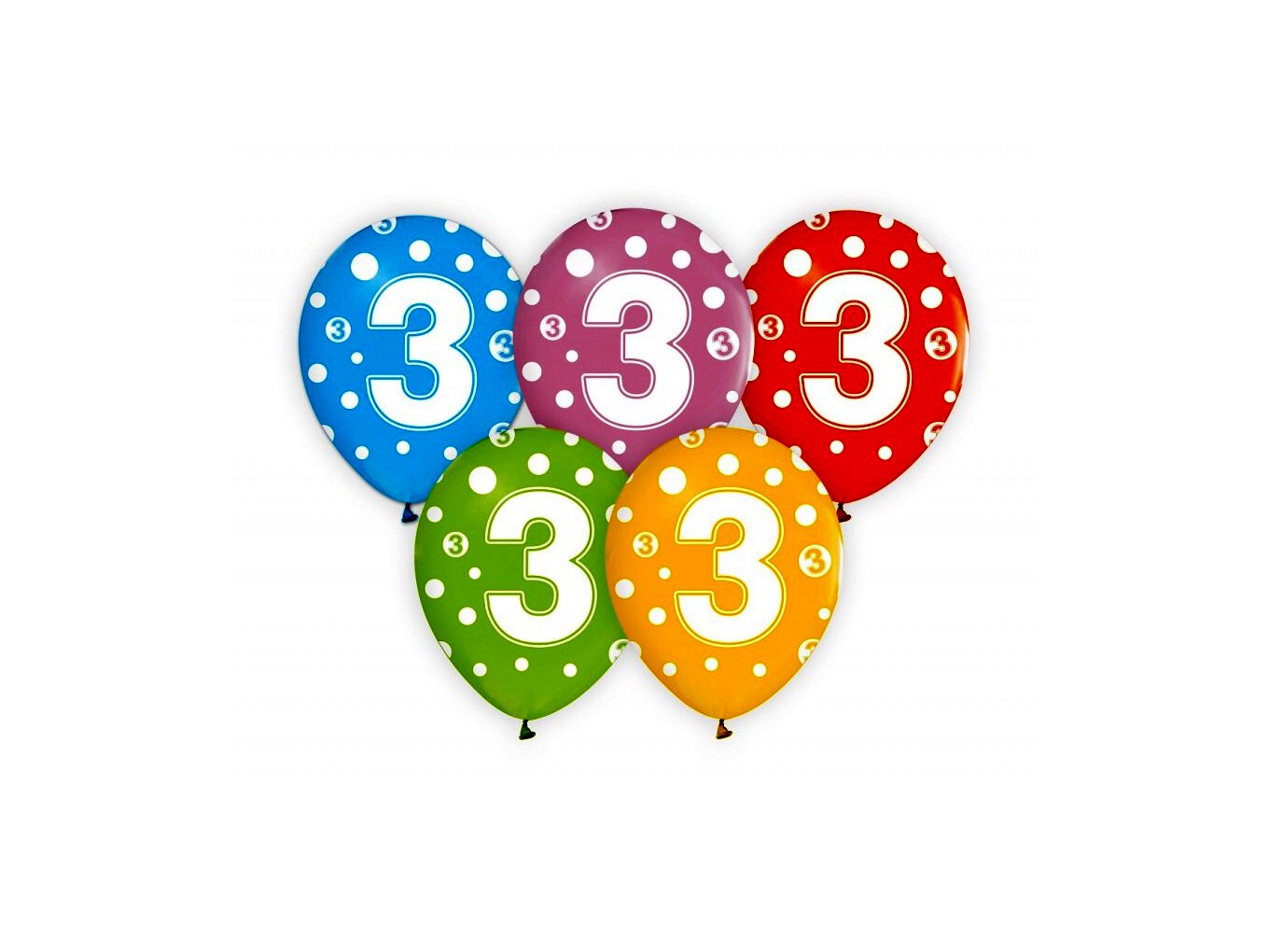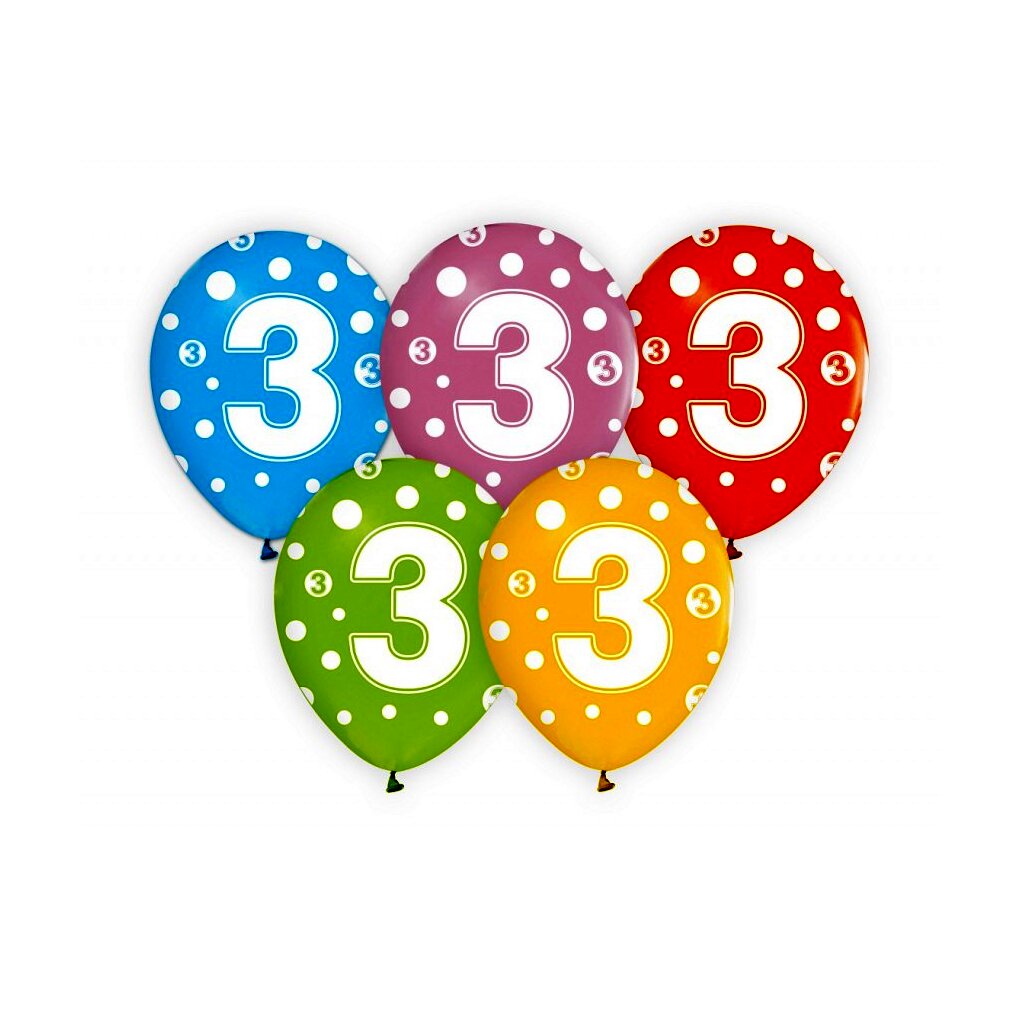 Színes, pöttyös számos lufi 5 darabos szett, 3