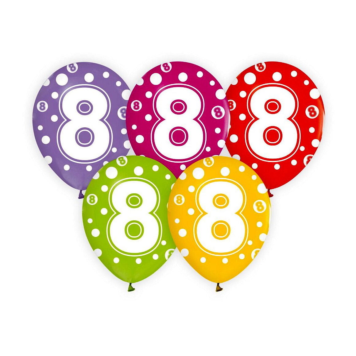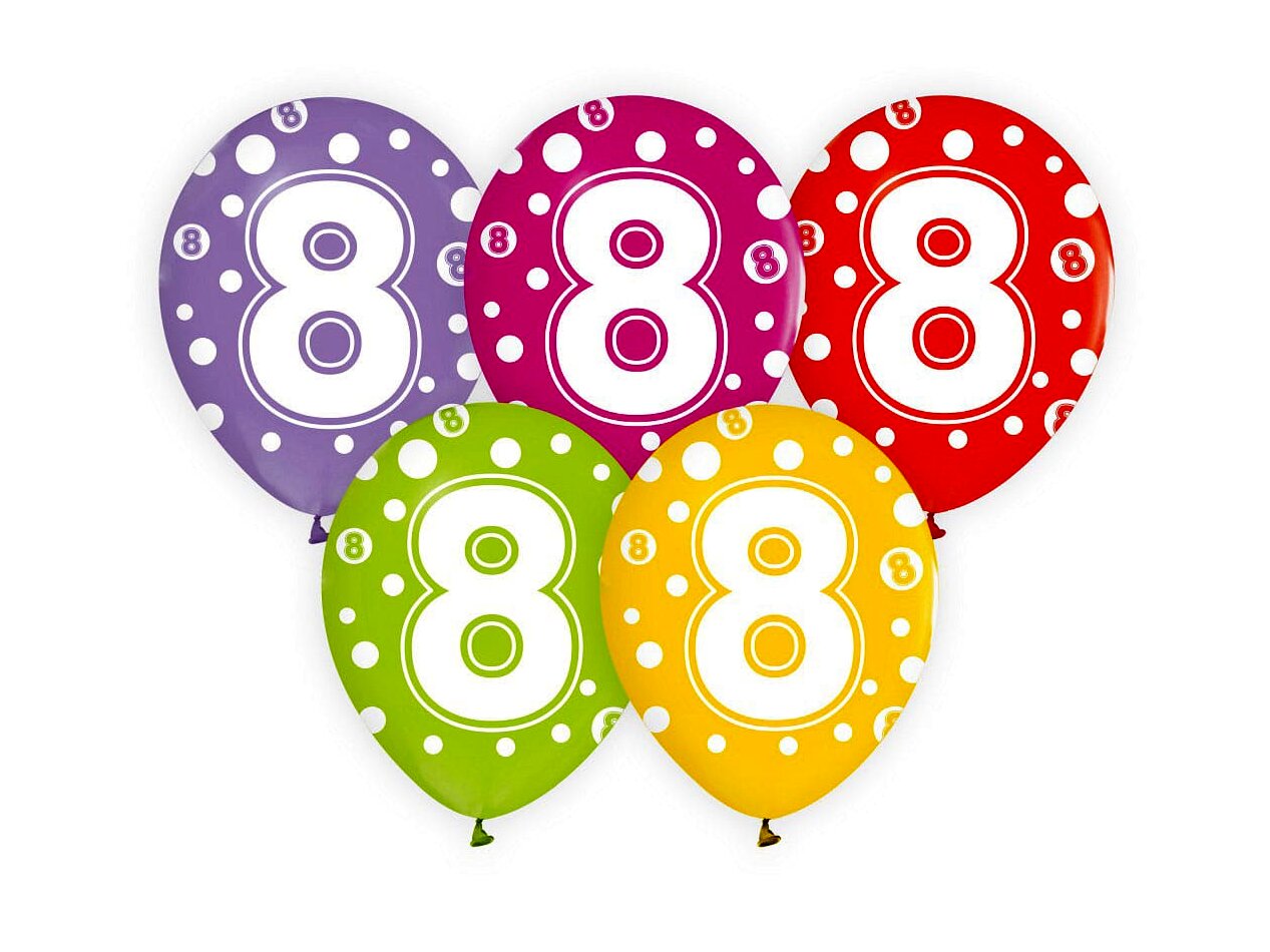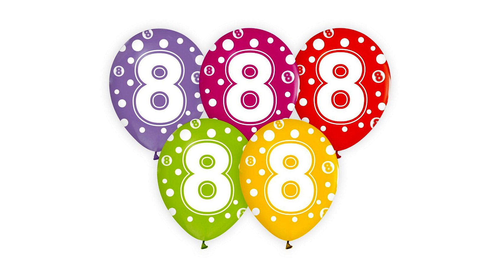 Színes, pöttyös számos lufi 5 darabos szett, 8