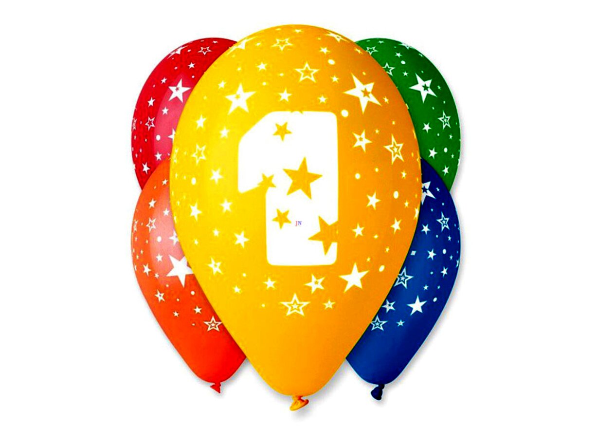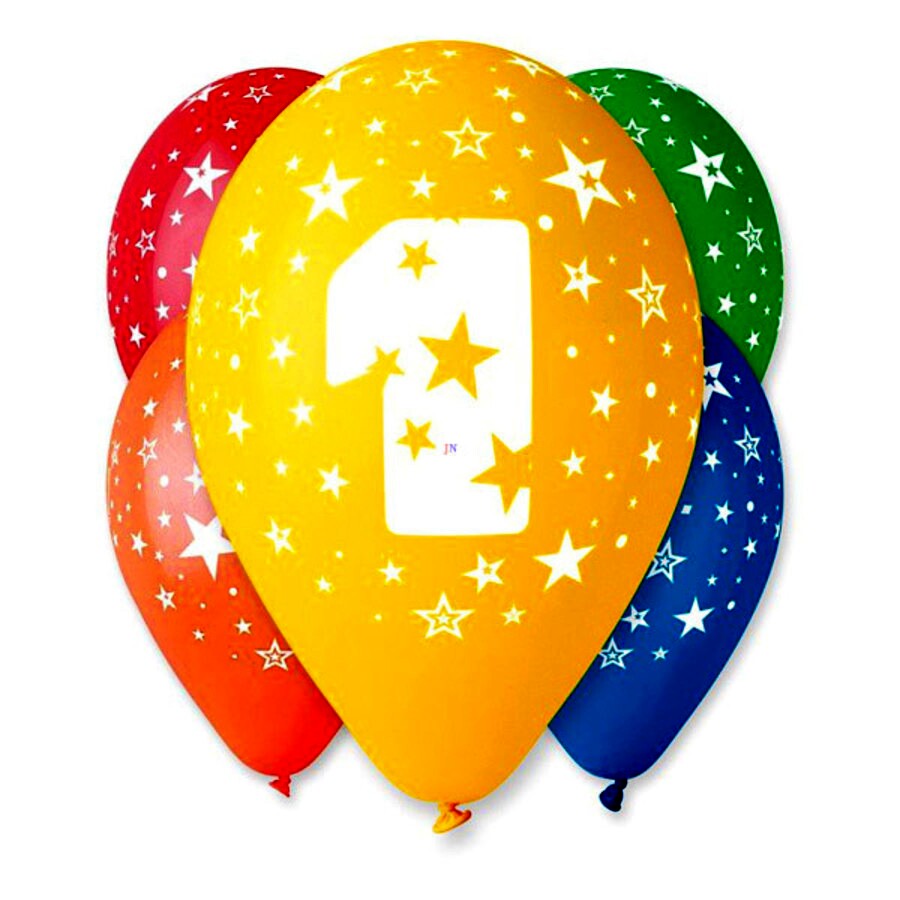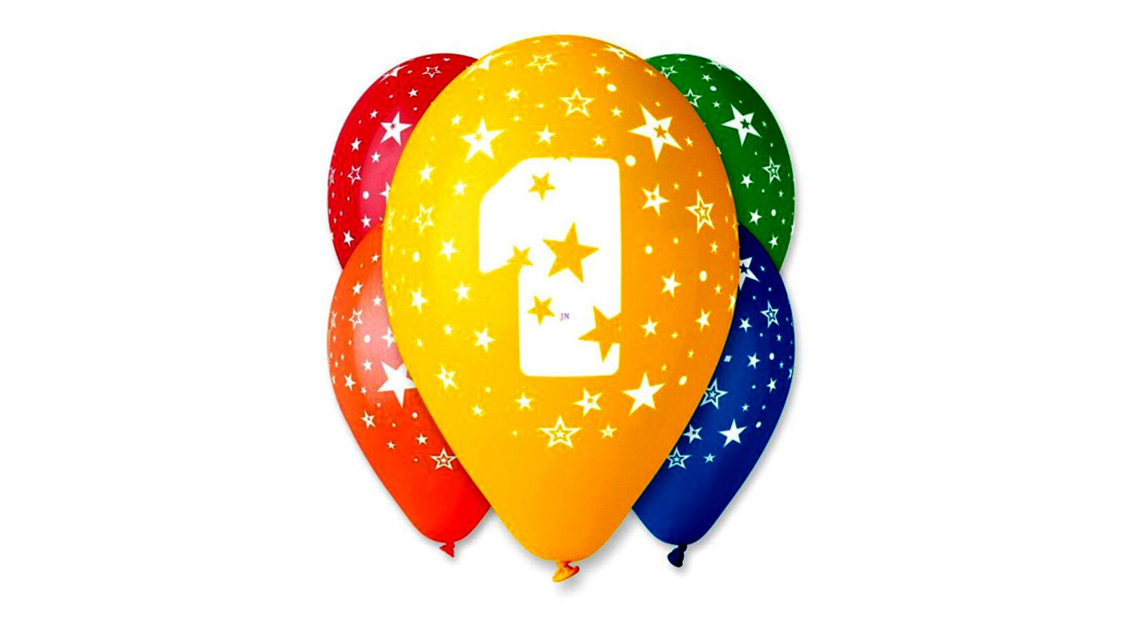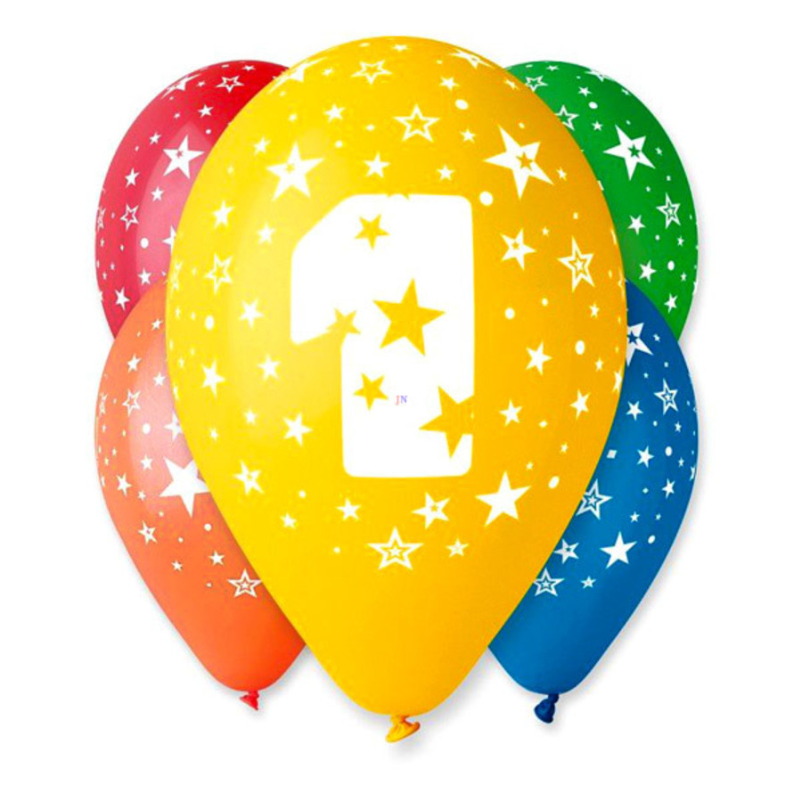 Gumiból készült, 1-es számot ábrázoló mintával ellátott lufik, vegyes színekben.