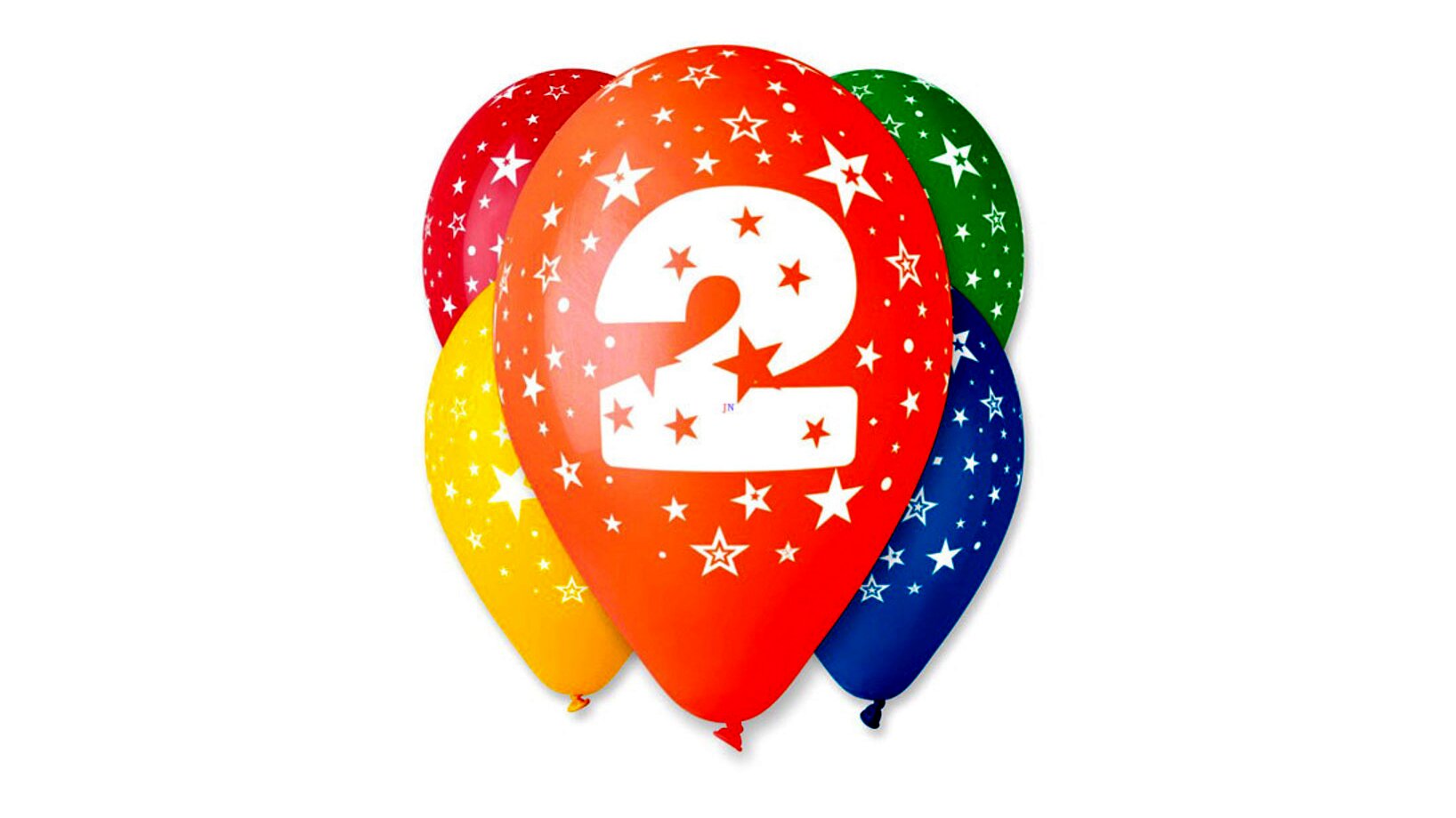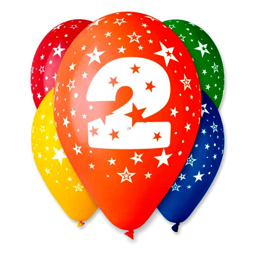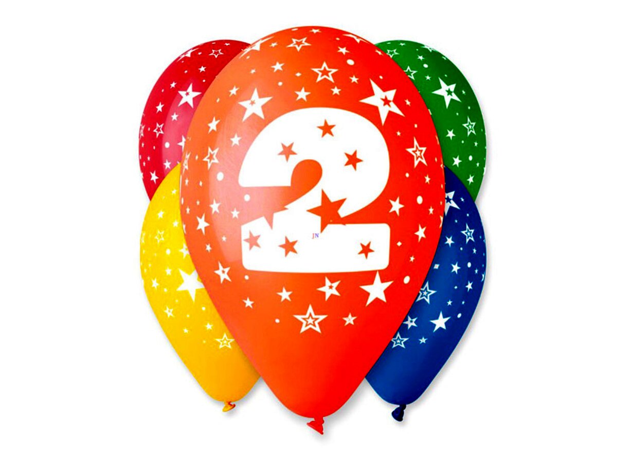 Gumiból készült, 2-es számot ábrázoló mintával ellátott lufik, vegyes színekben.