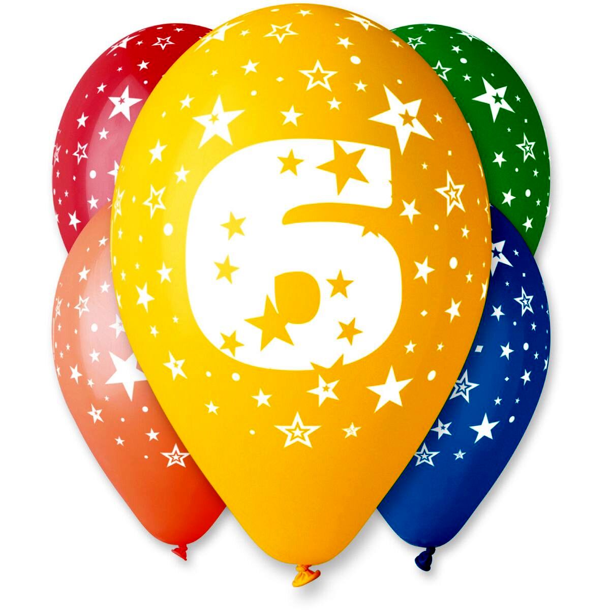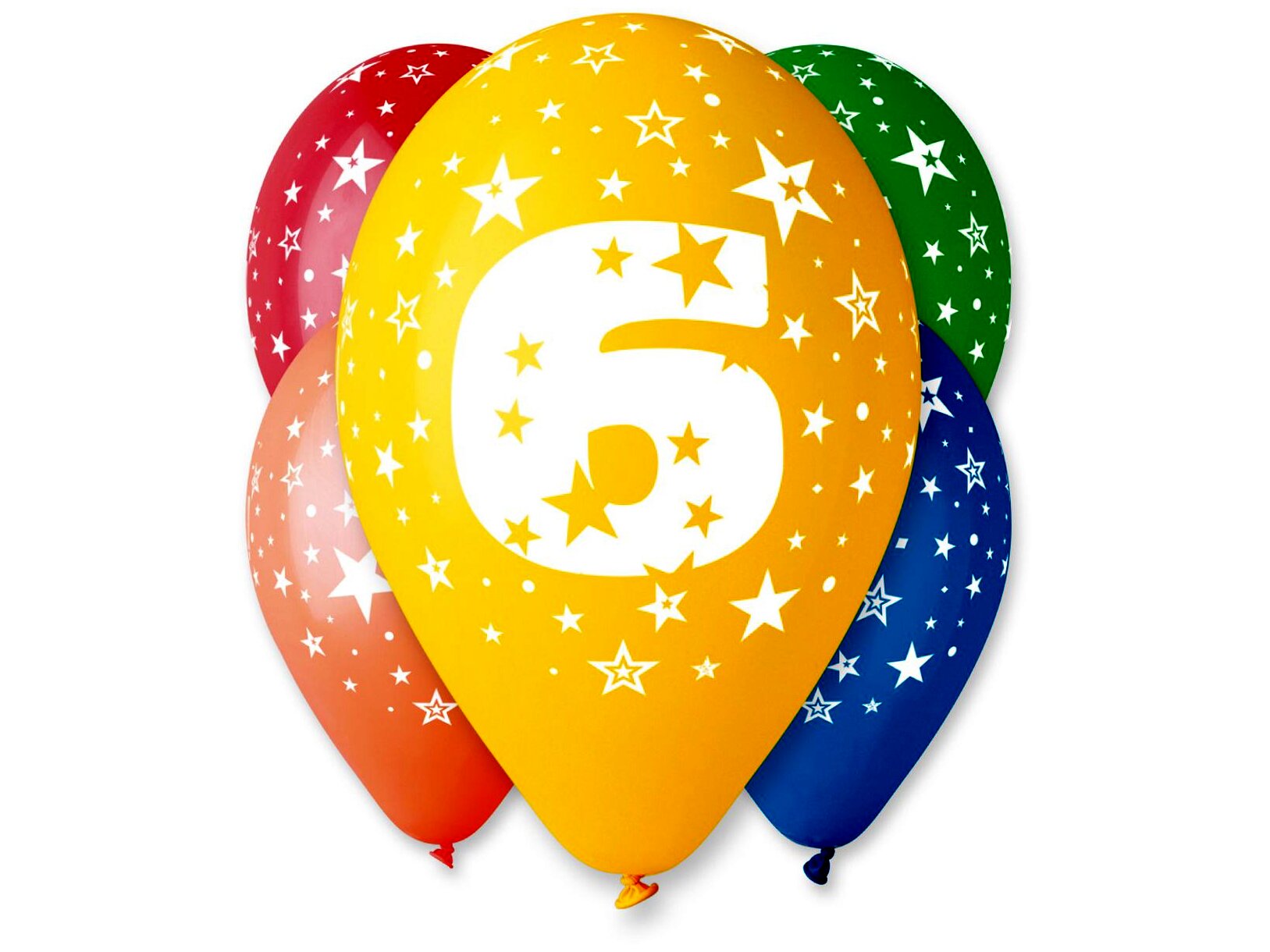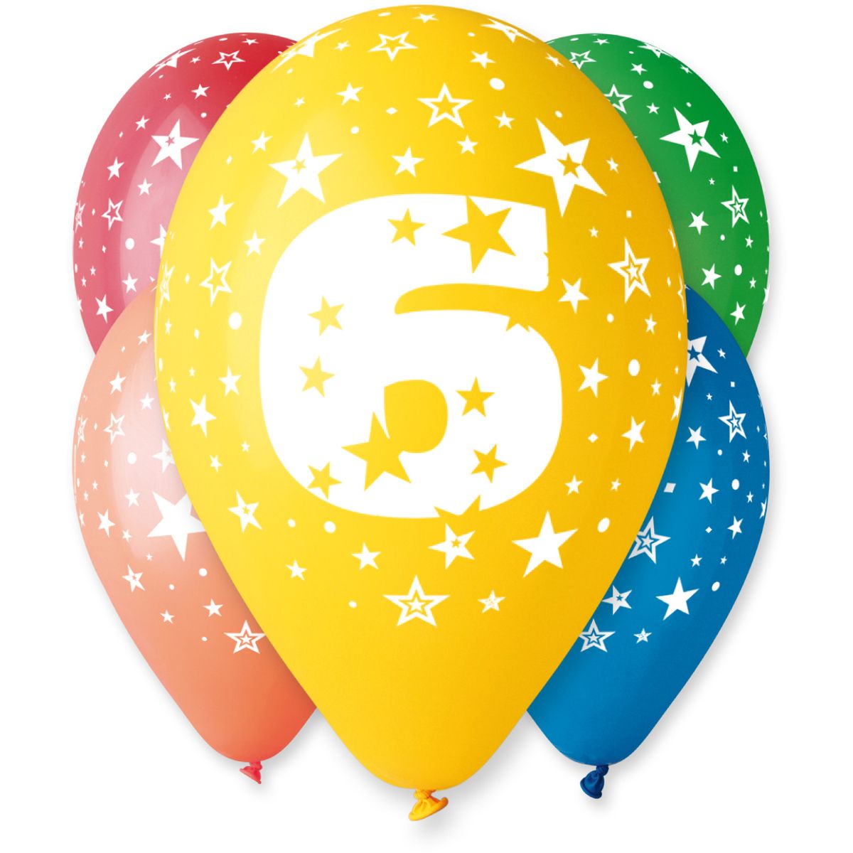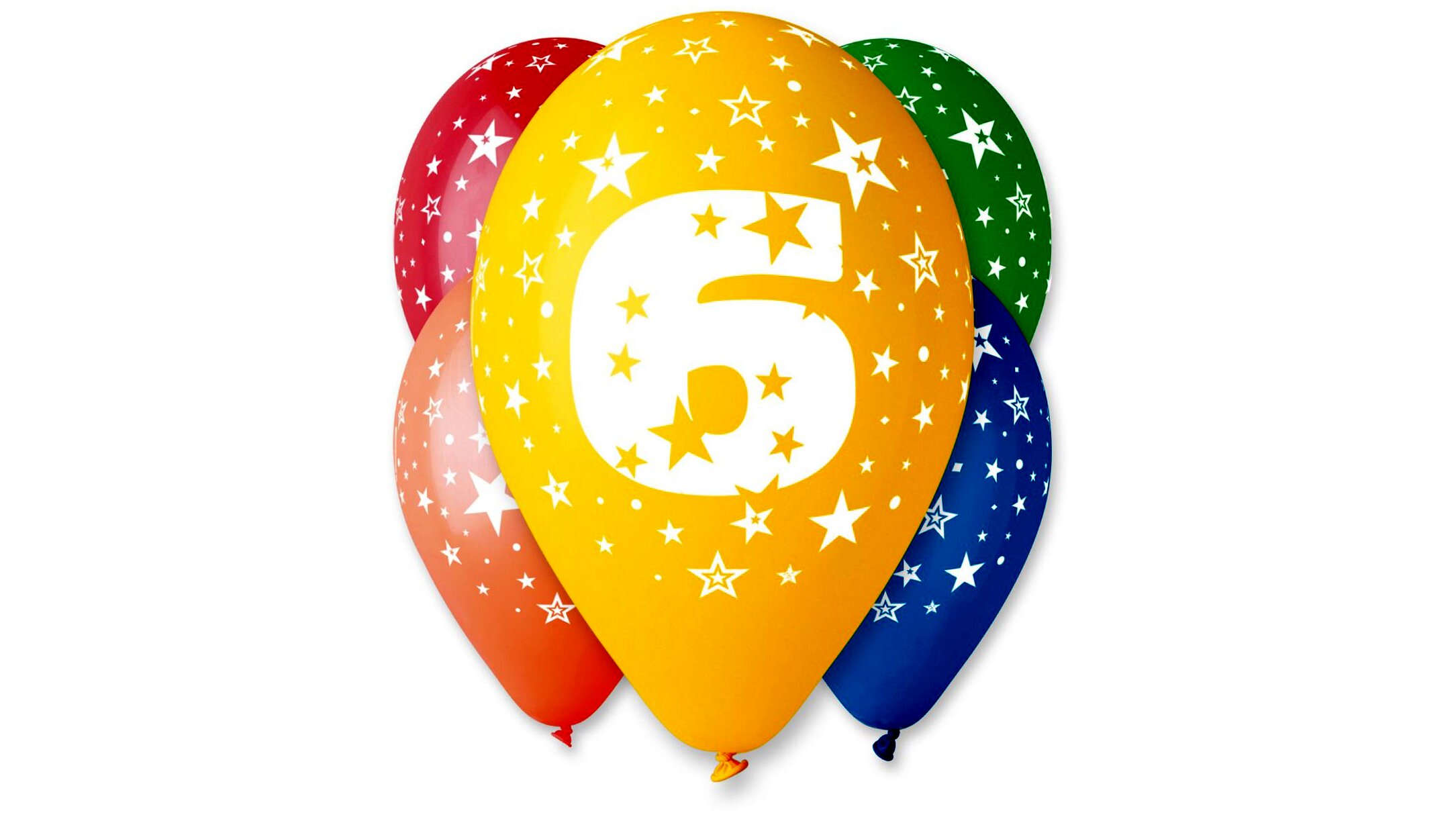 Gumiból készült, 6-os számot ábrázoló mintával ellátott lufik, vegyes színekben.