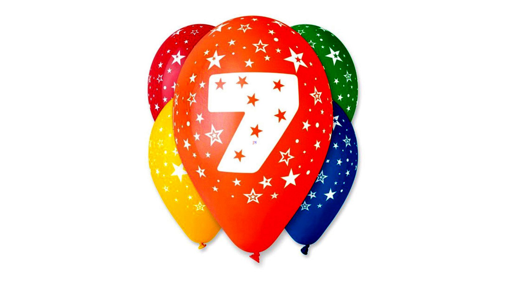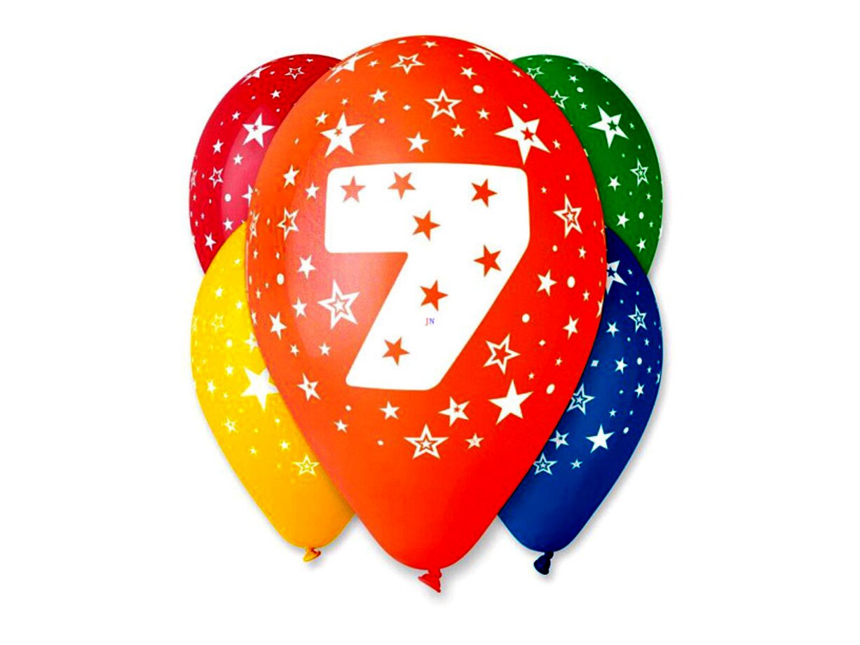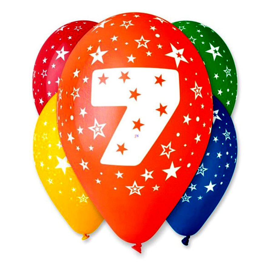 Gumiból készült, 7-es számot ábrázoló mintával ellátott lufik, vegyes színekben.