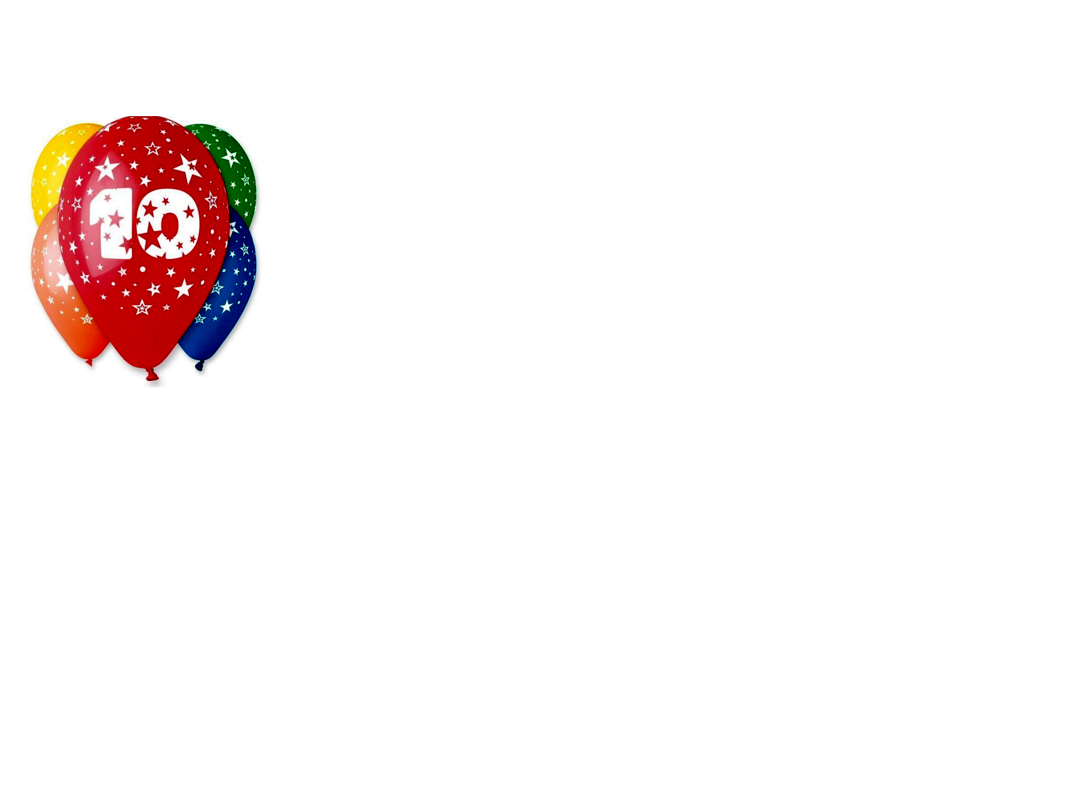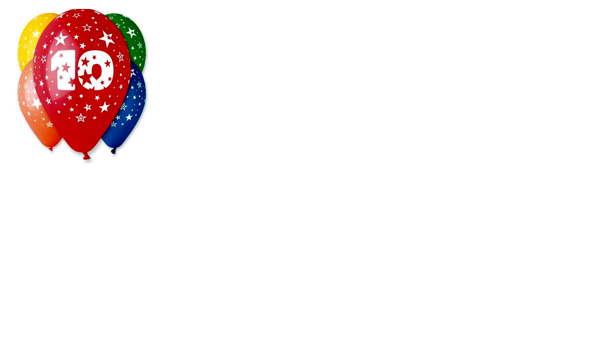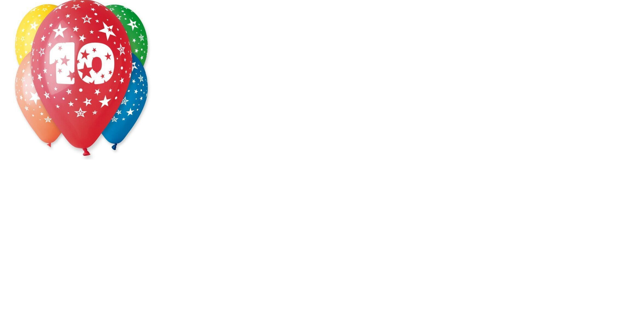 Gumiból készült, 10-es számot ábrázoló mintával ellátott lufik, vegyes színekben.