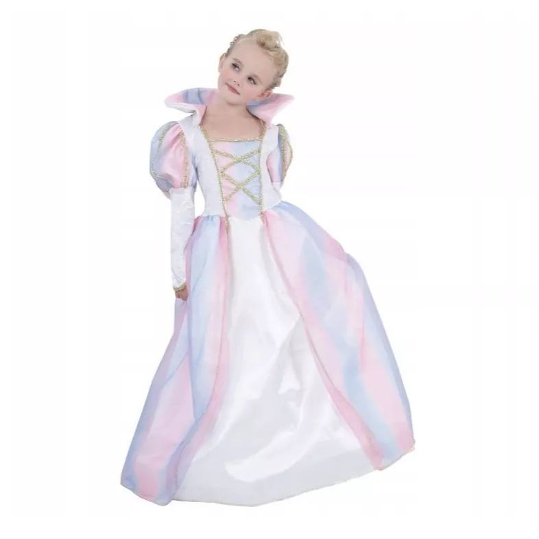 A Szivárvány hercegnő jelmez egy színes, könnyű viselet, amely hercegnős megjelenést ad gyerekeknek jelmezes alkalmakra. A szivárványos dizájn, a pufi ujjak és az aranyszínű díszítések együtt ünnepi, látványos összhatást teremtenek.