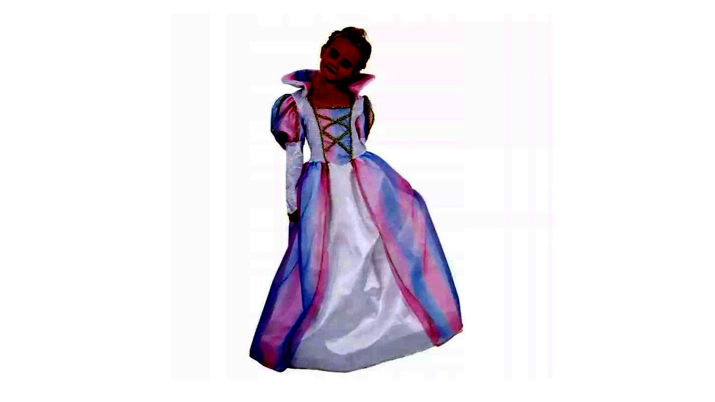 A ruhán megjelenő élénk, szivárványos színek segítenek, hogy a jelmez messziről is feltűnő legyen, így könnyen megteremti a hercegnős hangulatot.