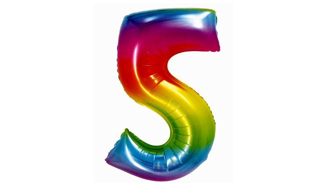 Szivárvány színű, számos fólia lufi, 76cm, 5