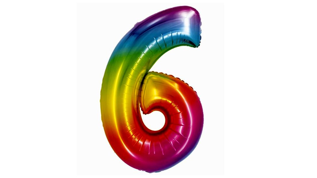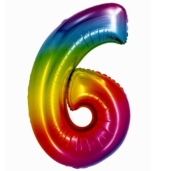 Szivárvány színű, számos fólia lufi, 76cm, 6
