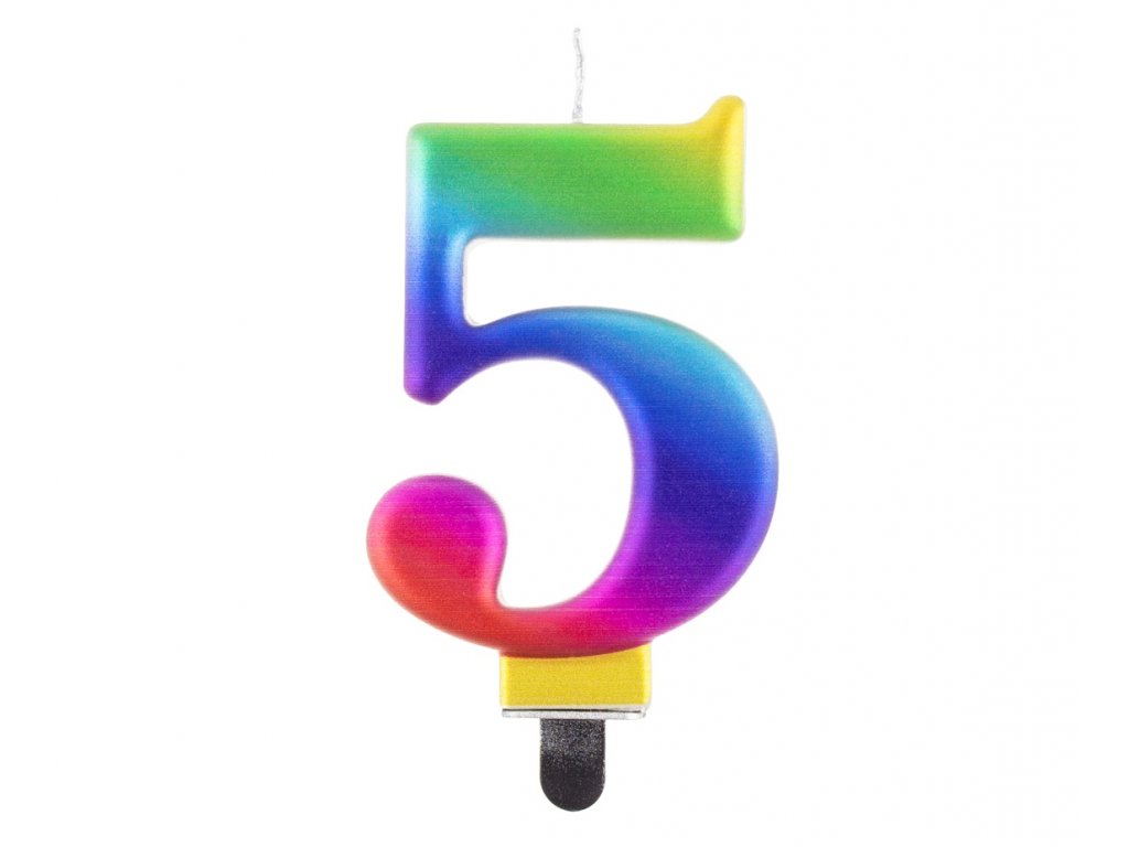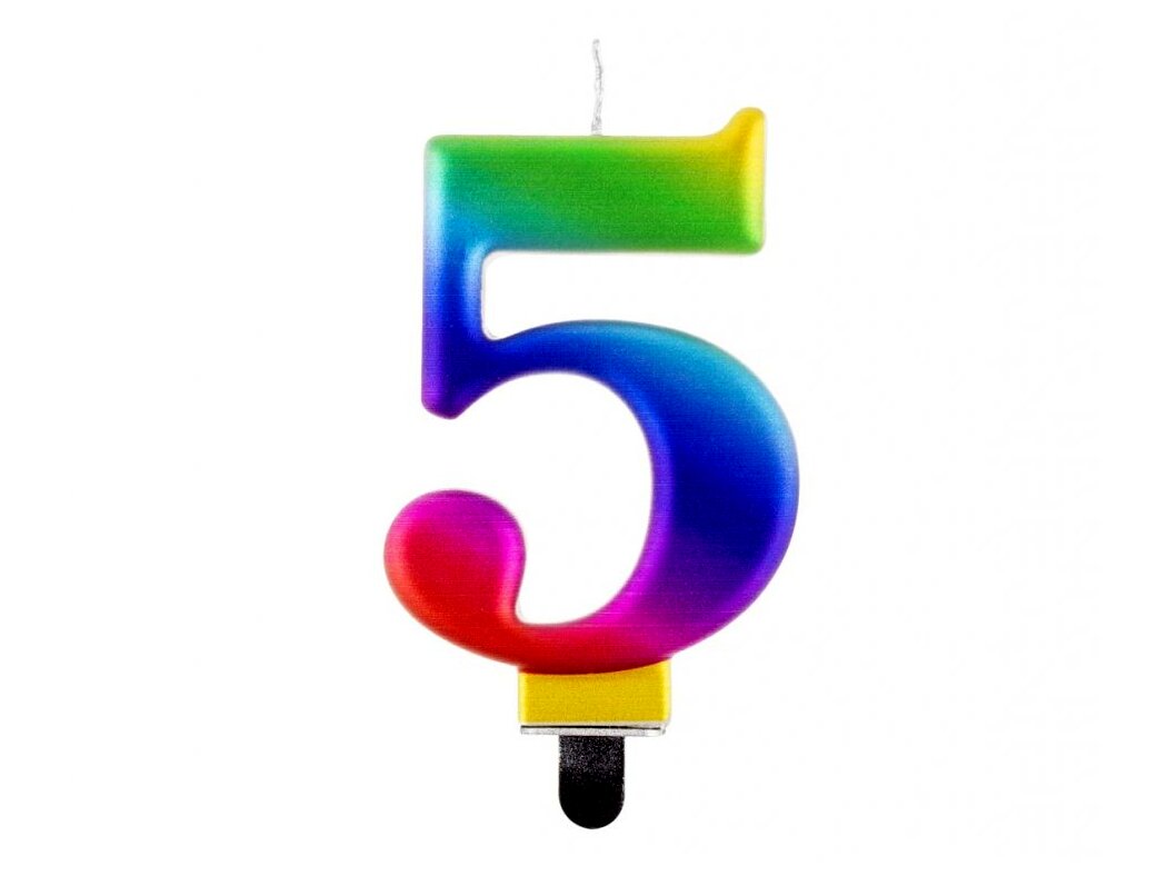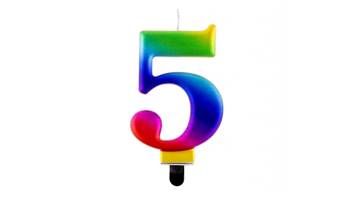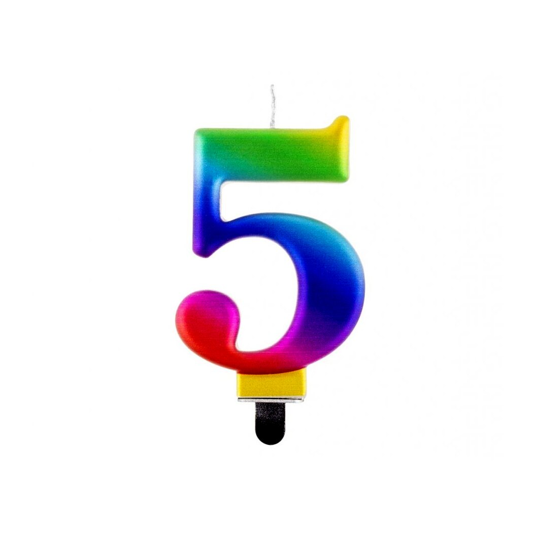 A varázslatos szivárvány színben pompázó, 5-ös számot ábrázoló születésnapi gyertya a legszebb kiegészítője lehet a buliknak ha valami különlegességre vágyunk.