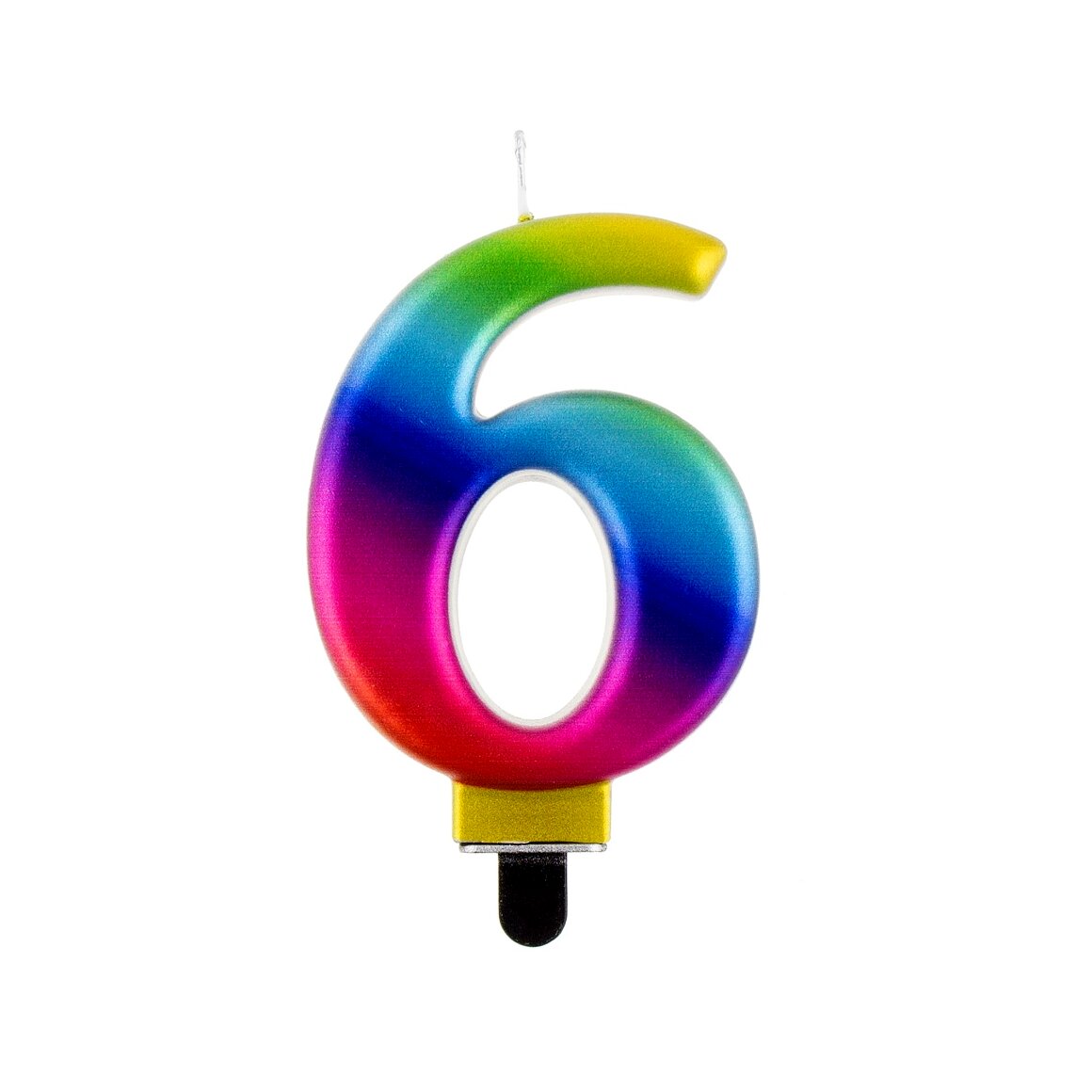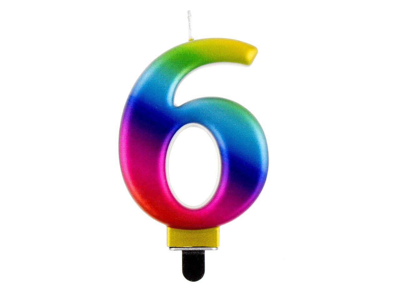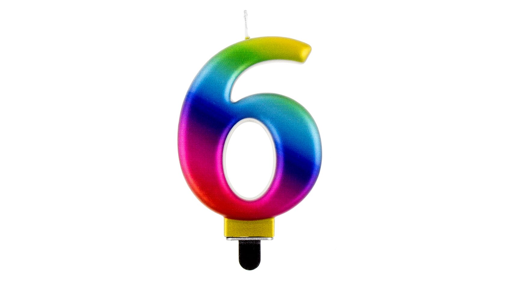 A varázslatos szivárvány színben pompázó, 6-os számot ábrázoló születésnapi gyertya a legszebb kiegészítője lehet a buliknak ha valami különlegességre vágyunk.