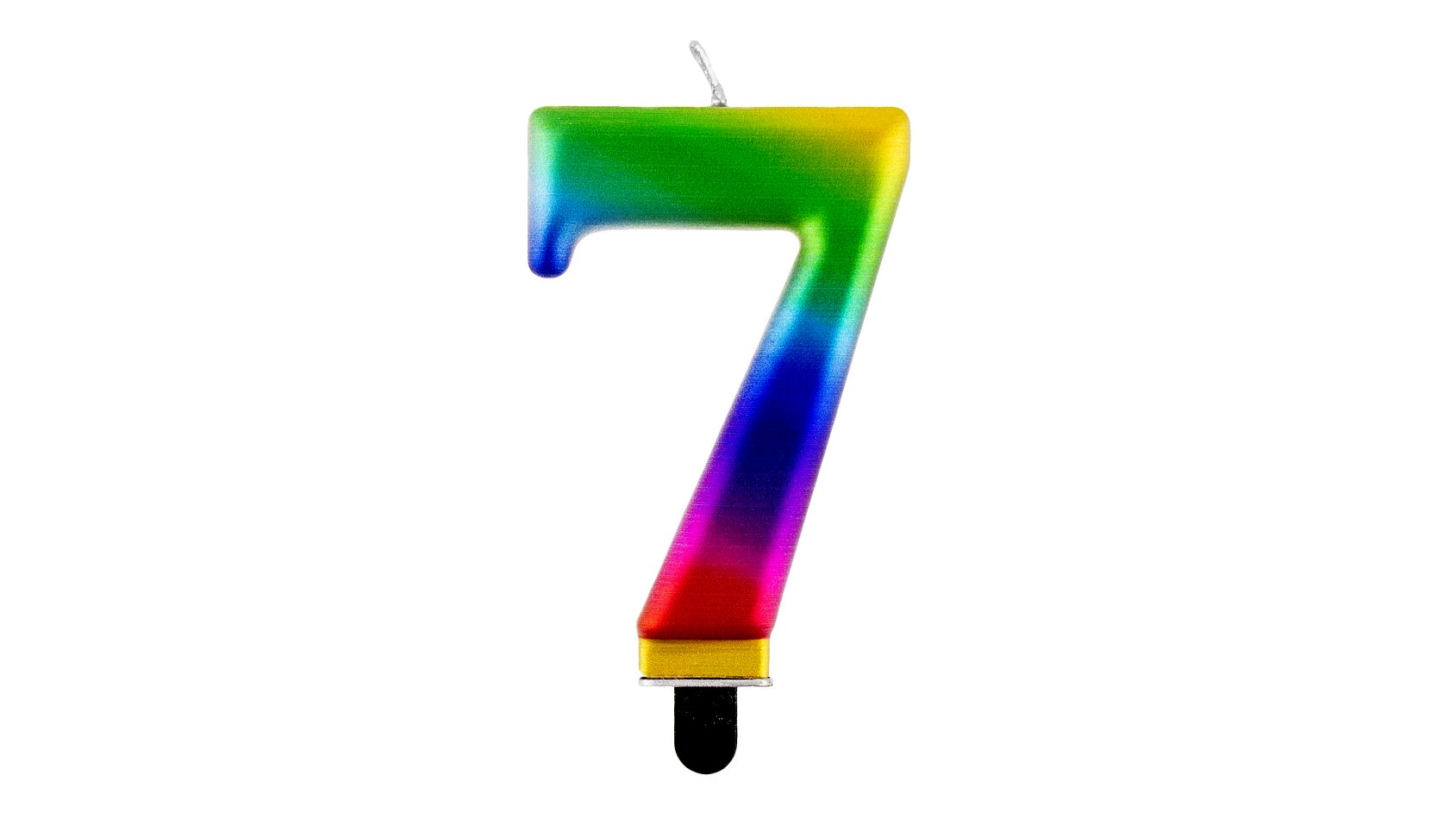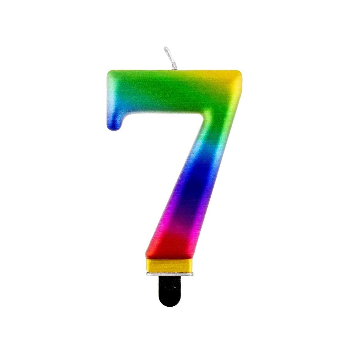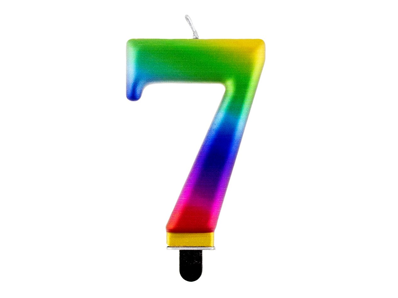 A varázslatos szivárvány színben pompázó, 7-es számot ábrázoló születésnapi gyertya a legszebb kiegészítője lehet a buliknak ha valami különlegességre vágyunk.