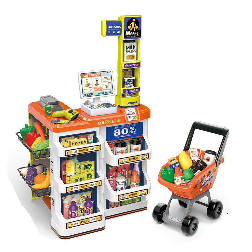 A gyerekek megnyithatják saját kisboltjukat, és kereskedhetnek termékekkel - mindeközben a pénztárgép játékosan tanítja őket számolni. A kis eladók és vásárlók elképzelhetik, hogy egy igazi boltban vannak.A készlet lehetőséget teremt a szerepjátékra, ami fejleszti a gyerekek képzeletét, fantáziáját és kreativitását, emellett hozzájárul a térlátás, és a finommotorika fejlődéséhez is.