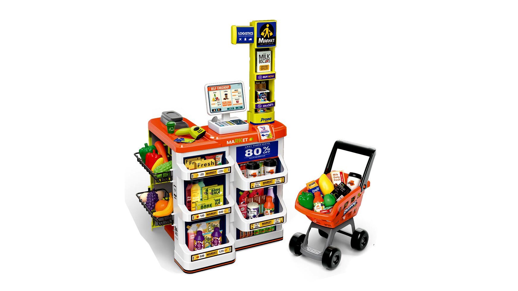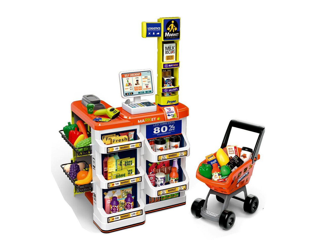 Szupermarket játékszett bevásárlókocsival, 60 db-os