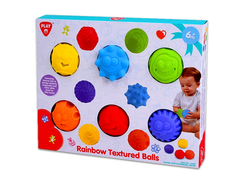 Puha, színes, különböző mintájú és formájú tapintásfejlesztő bébi játék. Remek választás a kisgyermekek korai fejlesztéséhez, a szem-kéz koordináció, vizuális érzékelés és motoros készségek fejlesztéséhez.