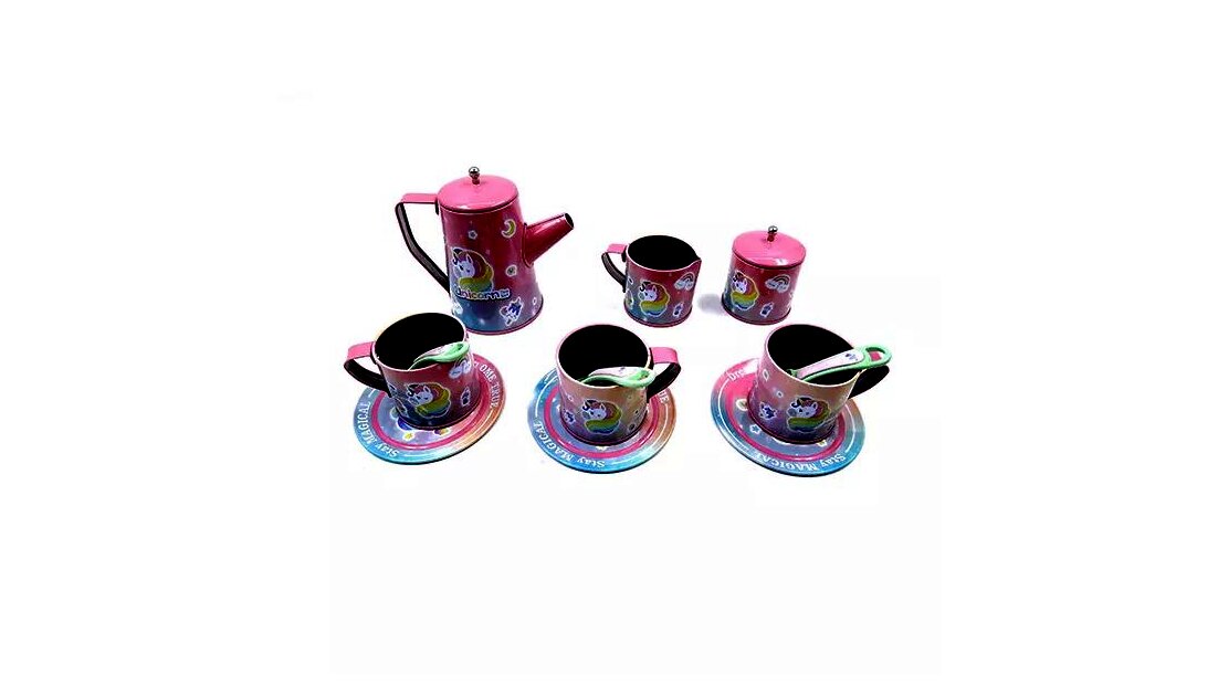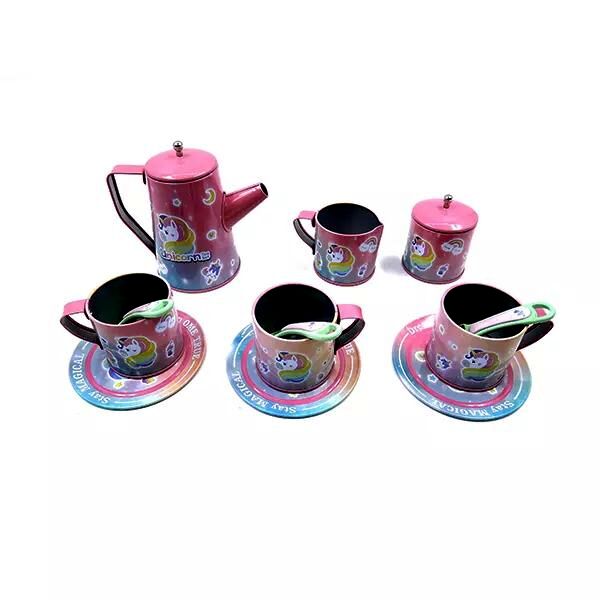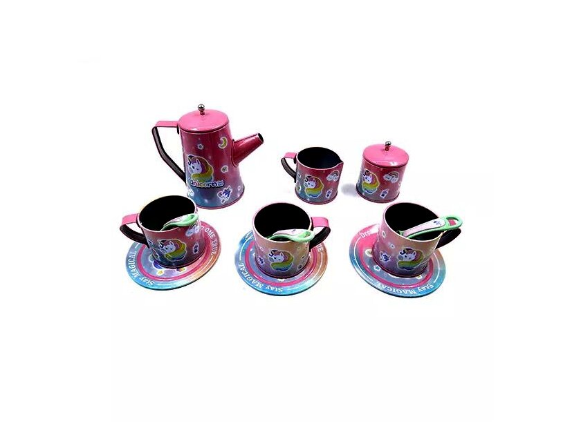 Merülj el a képzelet világában ezzel a káprázatos unikornis mintás teázó készlettel! Ez a gyönyörűen kidolgozott, fémből készült készlet tökéletes választás minden kisgyermek számára, akik szeretnek teapartikat rendezni a barátaikkal vagy játékaikkal.