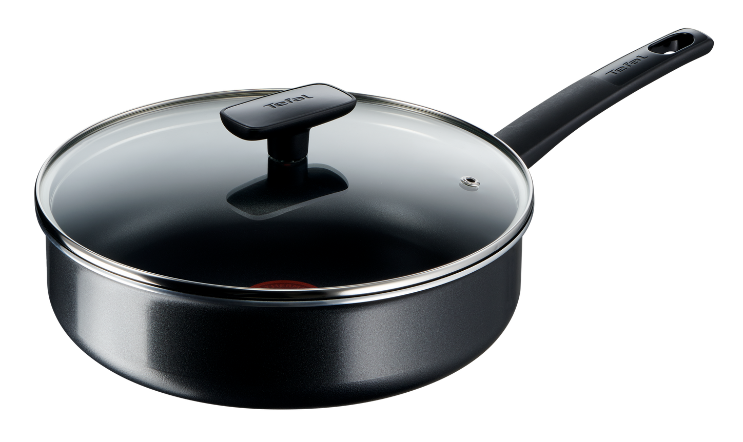 A Tefal Simplicity 24 cm-es mély serpenyő üvegfedővel praktikus választás a mindennapi főzéshez: tapadásmentes belső felülete megkönnyíti az alacsony zsiradékkal történő sütést-főzést, a hőmérséklet-jelző pedig segít a megfelelő előmelegítésben.
