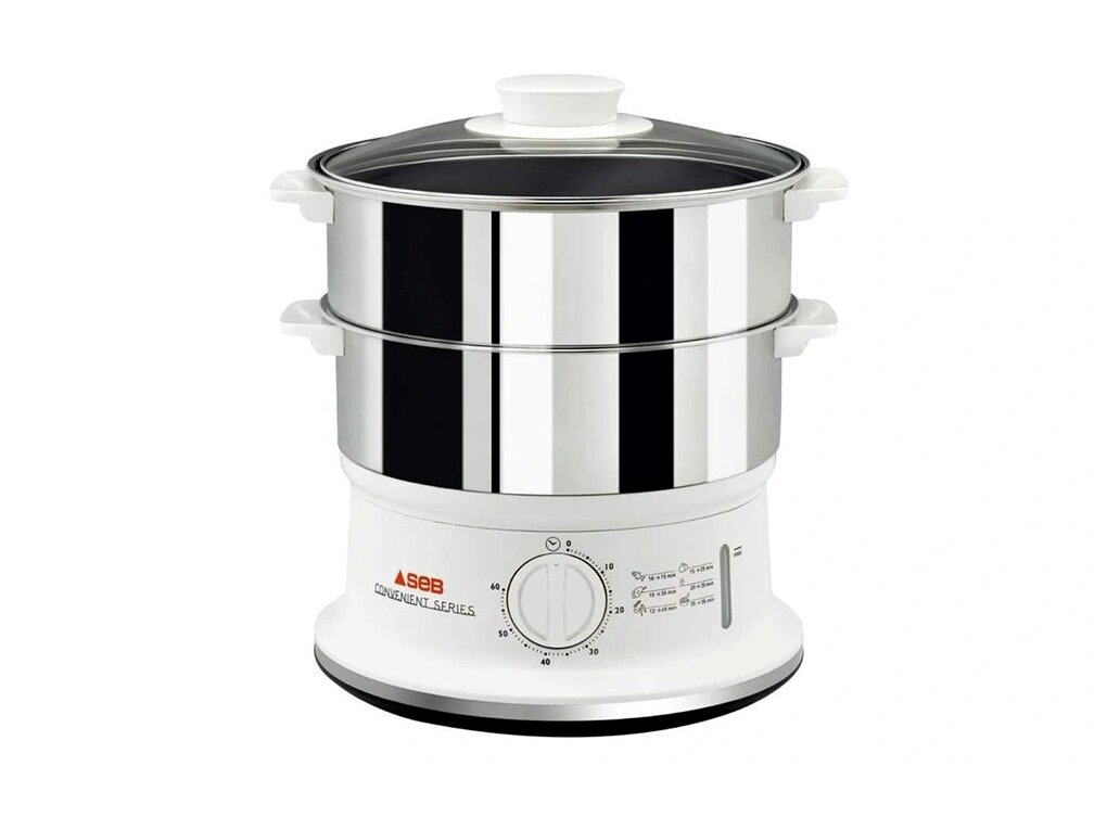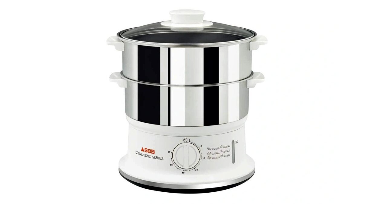 A Tefal Convenient VC145130 egy két tálas ételpároló, amellyel zöldségek, köretek és egyéb ételek kíméletesen készíthetők el gőz segítségével. A mechanikus időzítő és az automatikus kikapcsolás egyszerű kezelést ad, a külső vízutántöltés és a jól látható vízszintjelző pedig megkönnyíti a használatot főzés közben is.