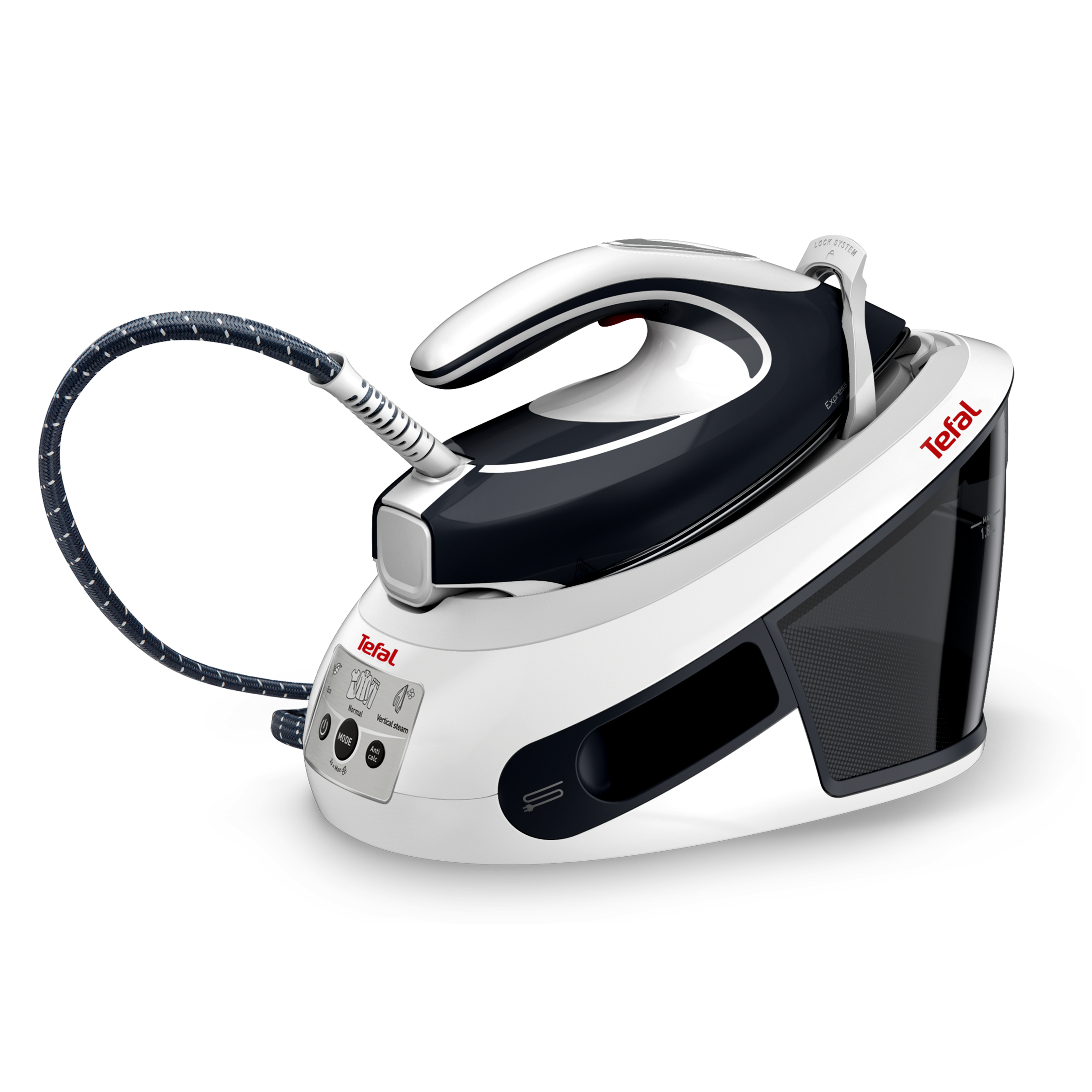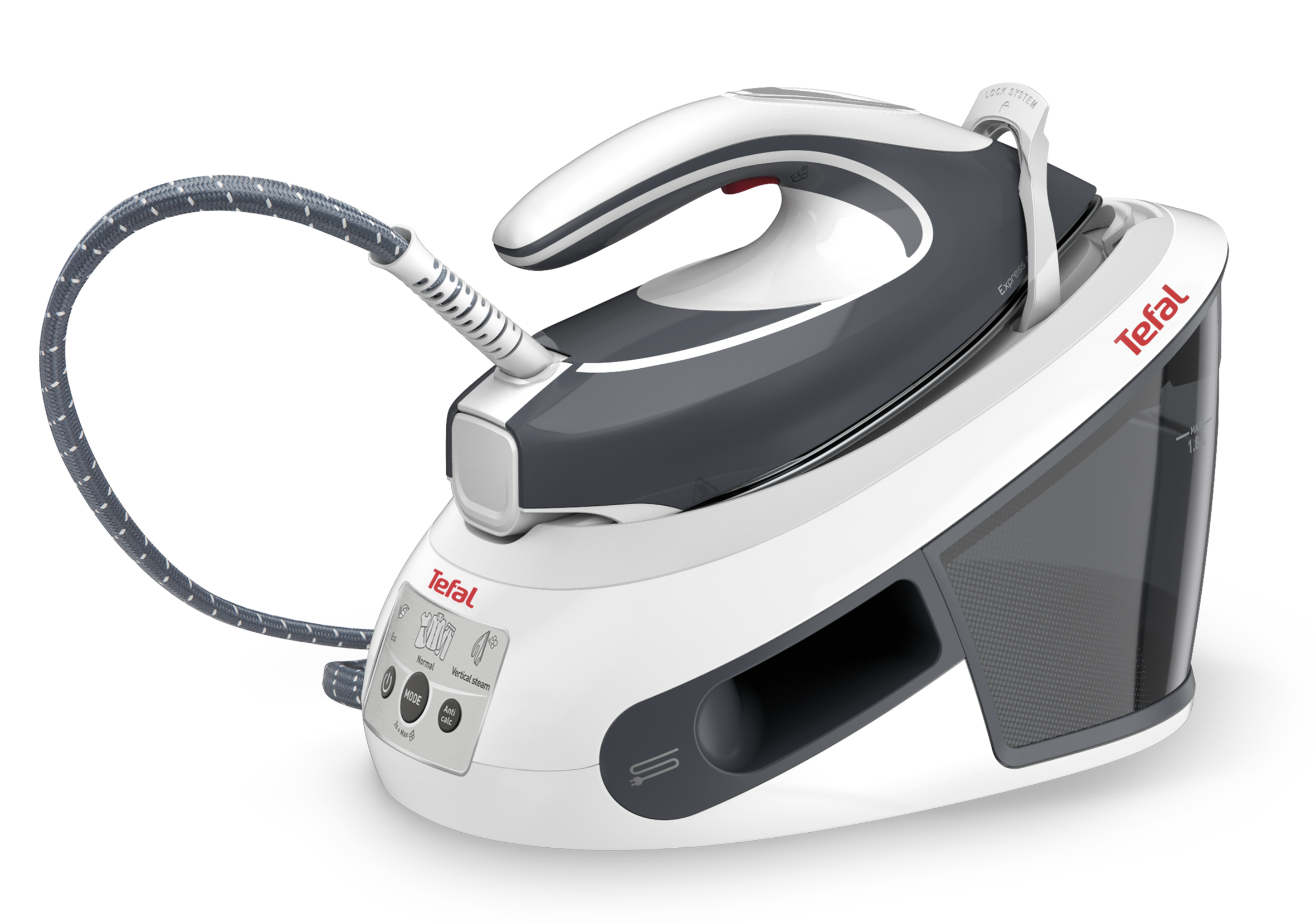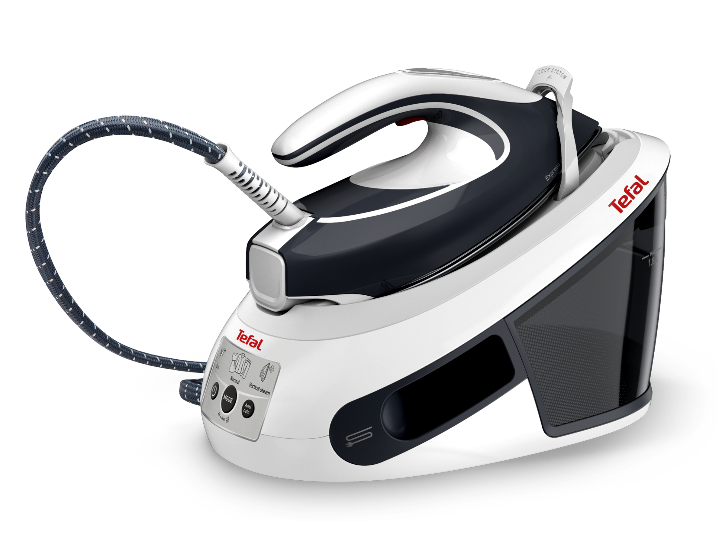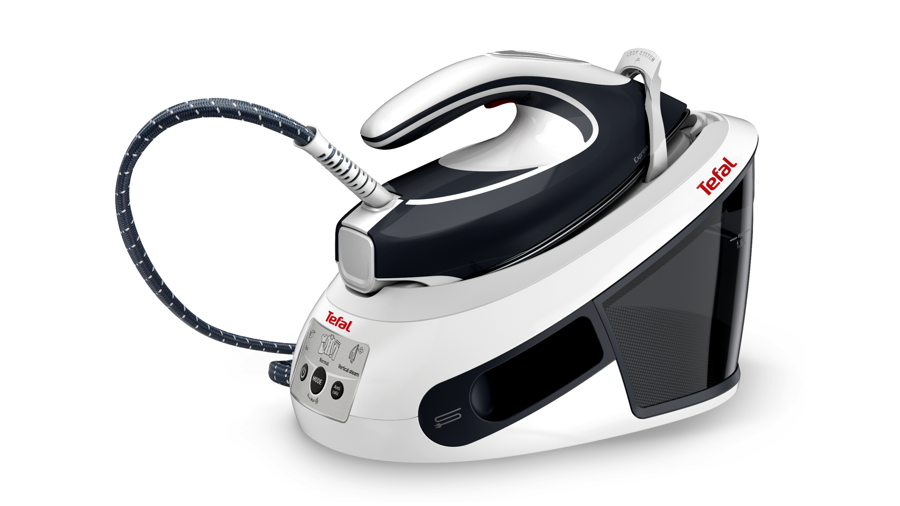 Az 1,8 literes, levehető víztartály ritkább utántöltést tesz lehetővé, a töltés pedig vasalás közben is megoldható, így nem kell megszakítani a folyamatot.