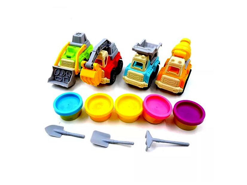 Ezzel a játékszettel nem csupán gyurmázni lehet, de különböző építkezős játékokat is eljátszani. A szettben 5 darab, különböző színű tégely gyurma található, 4-féle munkagép és további kézi földműveléshez szükséges eszközök. Játék közben segít fejleszteni a képzelőerőt és a finommotorikus készségeket.A termék jellemzői: