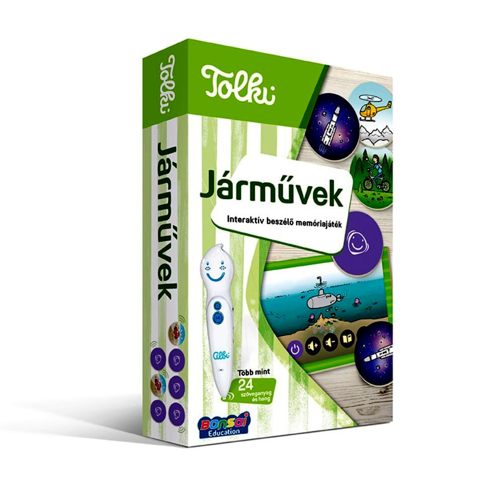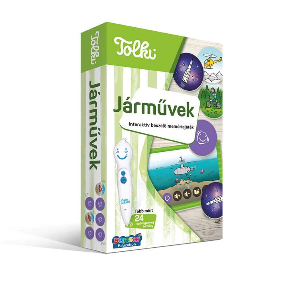 A klasszikus memóriajáték az első játékok egyike, amellyel megismerkedünk gyerekkorunkban. A Tolki azonban ennél többet nyújt: a vizuális memória mellett a hanggal történő azonosítás képességét is fejleszti. A többféle szabály szerint játszható játék segítségével az óvodások megismerkedhetnek a különböző járművekkel.