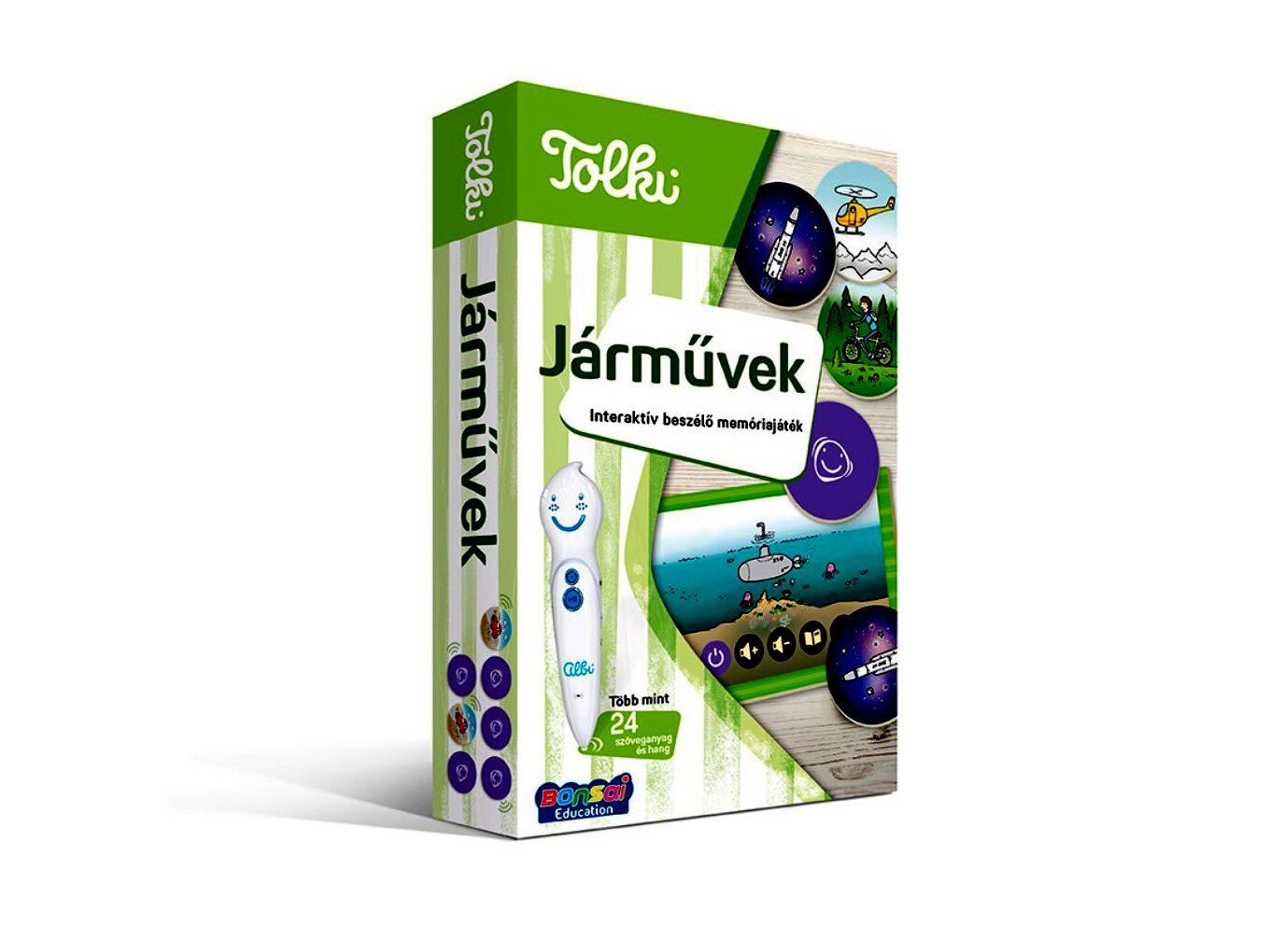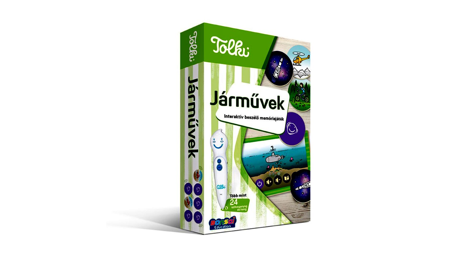 Az egyedi oktatási módszerre épülő interaktív, beszélő memóriajáték során csak meg kell érinteni az elektronikus toll hegyével a kártyákat, és máris felcsendül Kereki Anna narrációjában a járműveket ábrázoló képekhez tartozó több mint 24 különböző hanganyag.