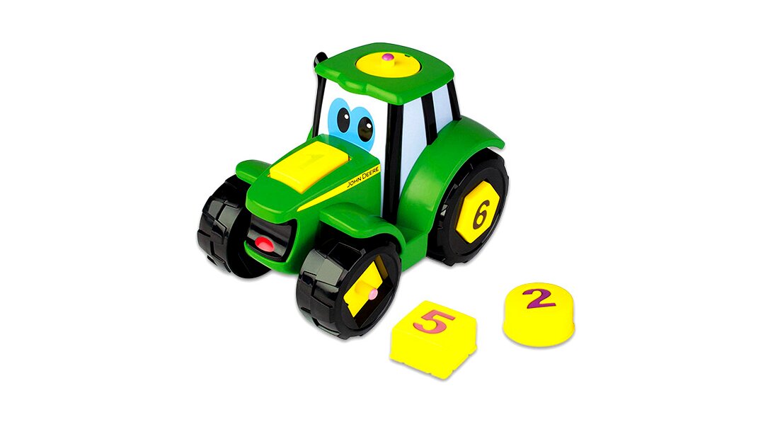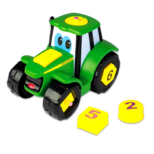 A Tomy: Formaválogató Johnny traktor igazán különleges járgány: alkatrészei nemcsak különböző formájúak, hanem más-más szám is szerepel rajtuk, így a jármű játékosan ismerteti meg a legkisebbeket a formákkal, a számokkal és a színekkel. A traktor összeszerelése egyszerű: a gyerekeknek csak a helyükre kell illeszteniük a formákat. Ha Johnny elkészült, és már az összes kukorica- és repceföldet felszántotta, a tetején található gomb megnyomásával újra alkatrészeire esik szét, így a gyerekek végtelenszer összerakhatják.