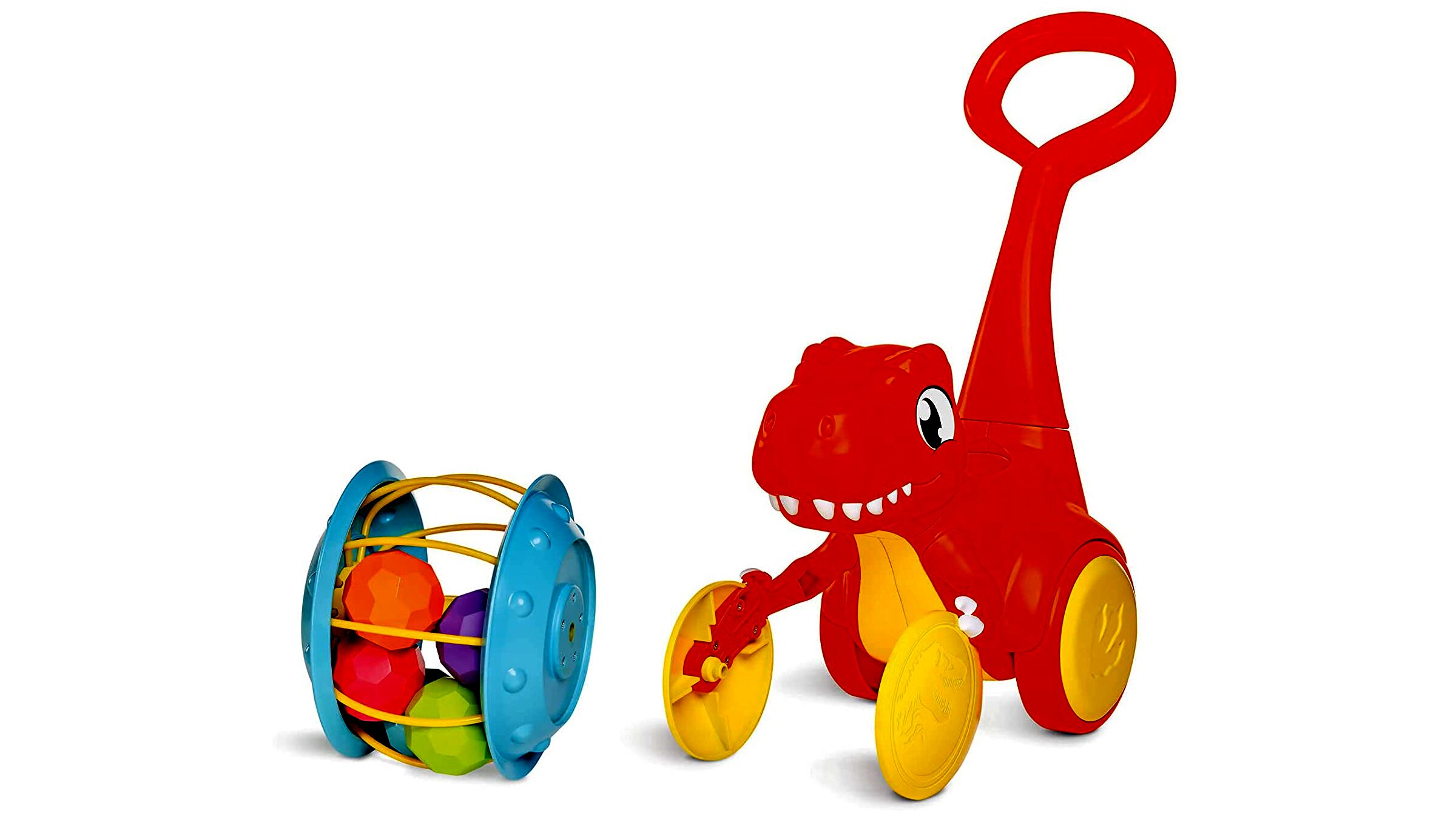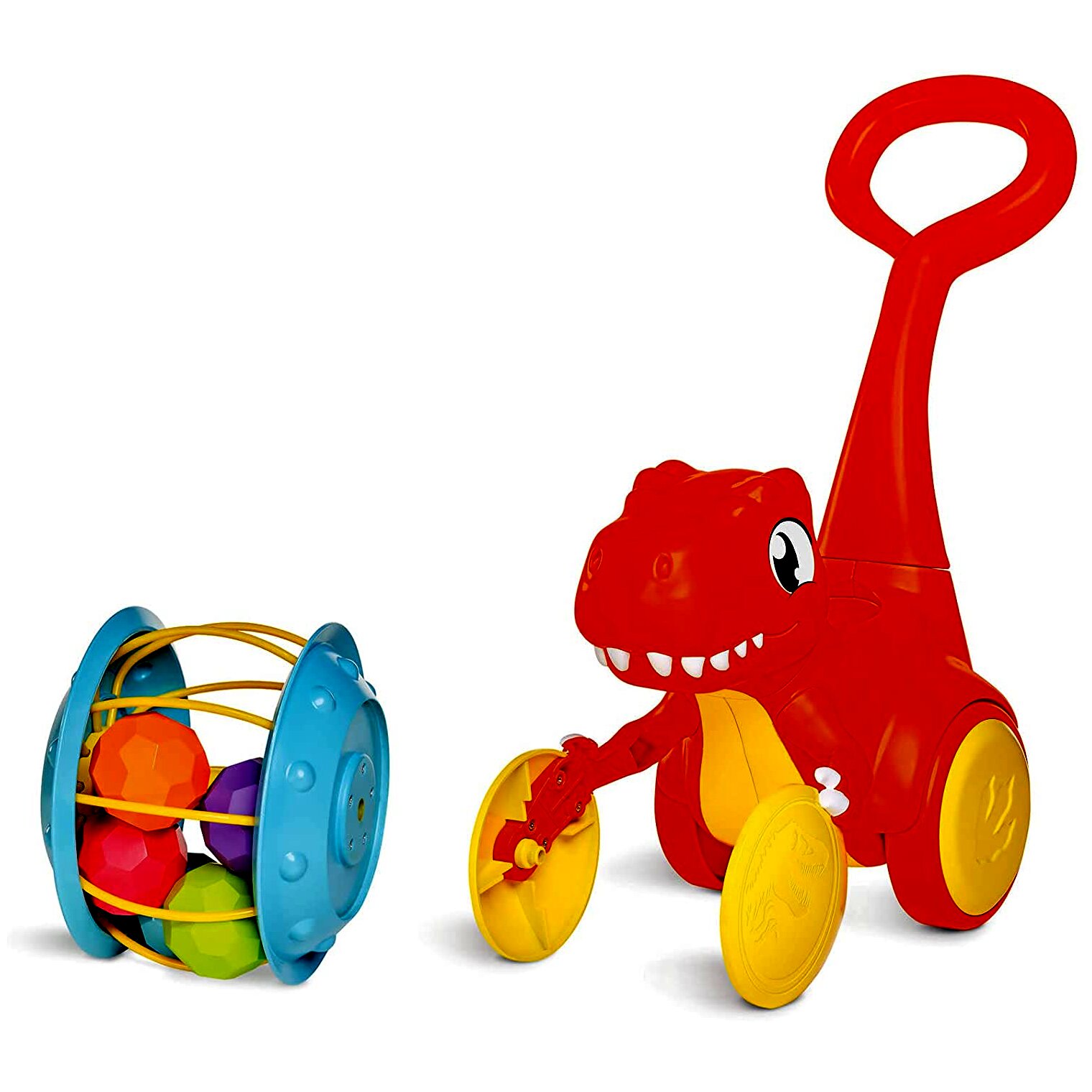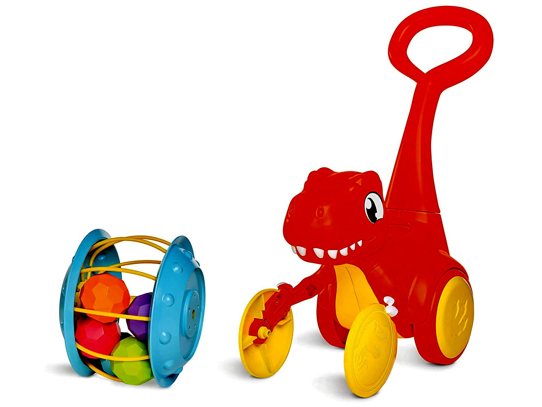 Induljon a Jurassic World T-Rex kaland ezzel a tologatható, labdaszedő dinoszaurusszal! A játékkal kétféleképpen is lehet játszani, a tolókart fogva a T-Rex kerekeken gurítható miközben a színes, műanyag kis sziklákat összeszedhetik a gyerekek. Fejleszti a nagy motoros készségeket, szórakoztat, továbbá a karra támaszkodva, járássegítőként is használható. A labdákkal töltött kerék kiszedhető a dinóból és külön álló játékként is használható.
