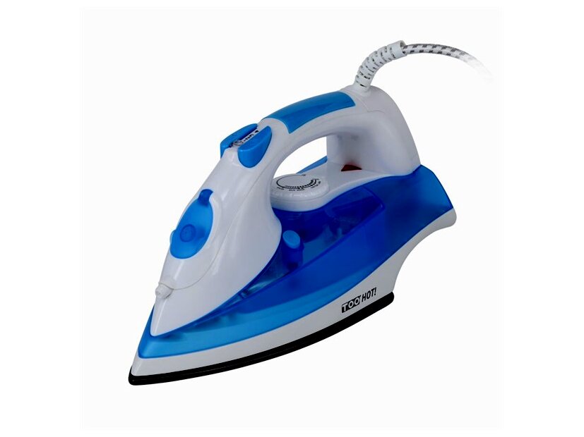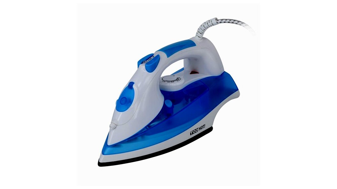 A TOO Hot! IR-343-BL gőzölős vasaló 2000 W teljesítményével gyorsan felmelegszik, és gőz-, permetező valamint gőzlövet funkcióival megkönnyíti a gyűrődések eltávolítását a különböző anyagokon. A teflon bevonatú talp az egyenletes siklást támogatja, a 350 ml-es víztartály pedig ritkább utántöltést tesz lehetővé.