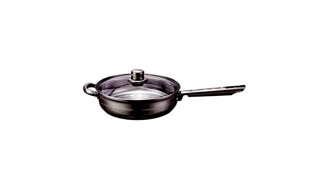 A TOO KT-222 egy 24 cm átmérőjű, rozsdamentes acél serpenyő fedővel, amely mindennapi sütéshez-főzéshez használható többféle tűzhelytípuson. Nyeles kialakítása és a fedő praktikusabbá teszi az ételek elkészítését és párolását.