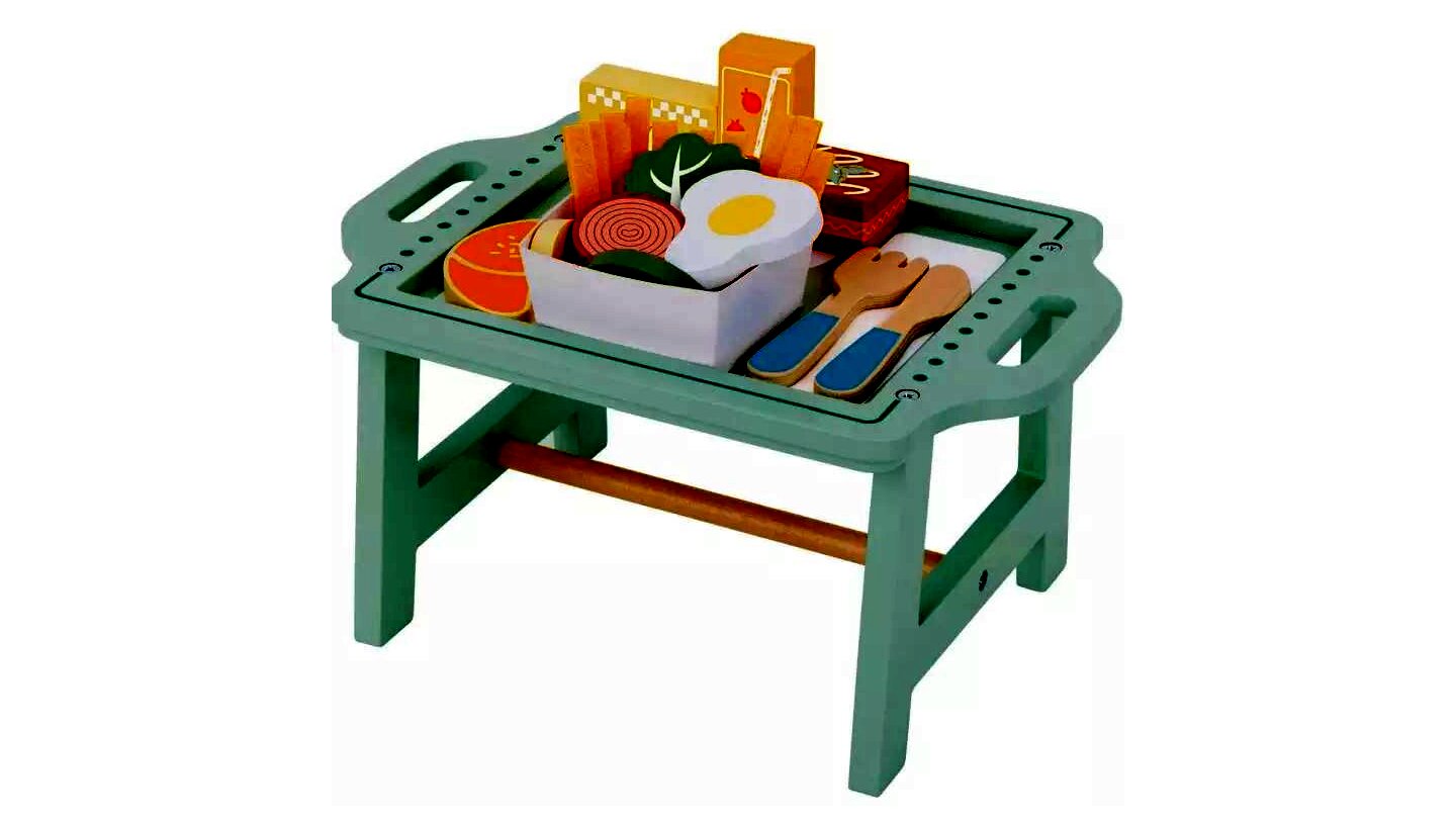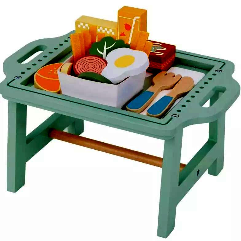 Ezzel a kis reggeliző asztalkával a gyerekek bárhol felszolgálhatják a reggelit, akár az ágyban is. Ínycsiklandozó falatok várnak mindenkit. Van itt tojás, zöldség friss pékáru, valamint gyümölcslé is. A csomaghoz tartozik egy menü is, ahol a gyerekek kiválaszthatják mint szeretnének reggelizni.A játék lehetőséget teremt a szerepjátékra, amely során fejlődik a gyerekek képzelete, fantáziája, kreativitása és kommunikációja.