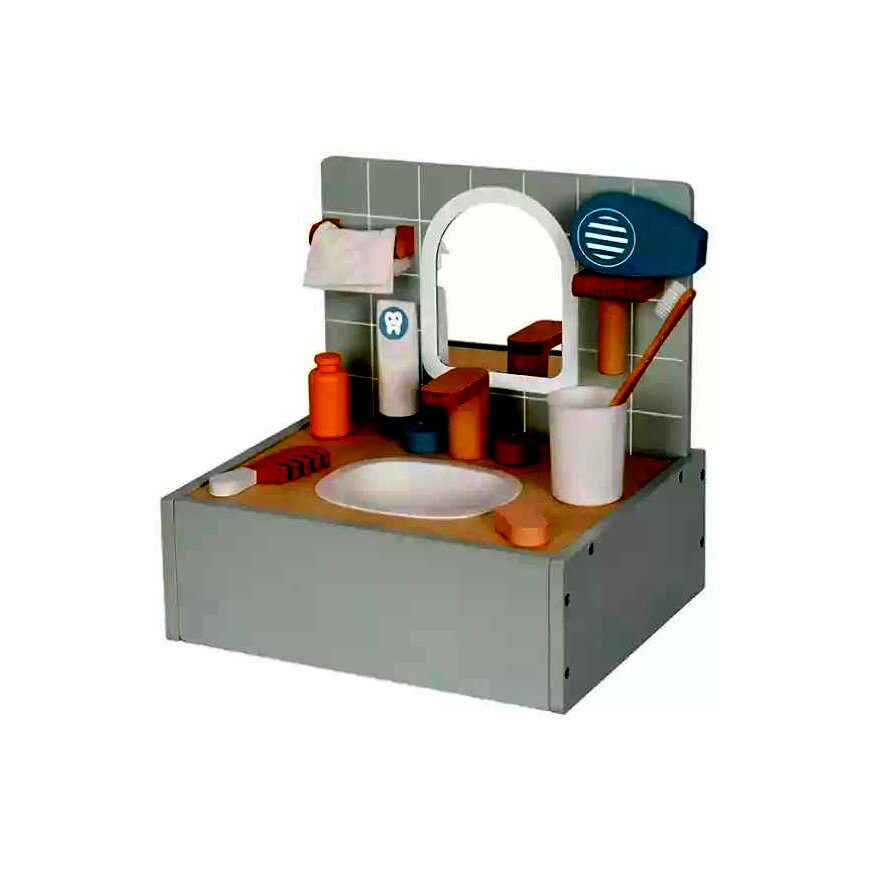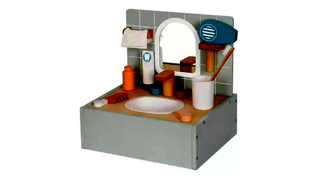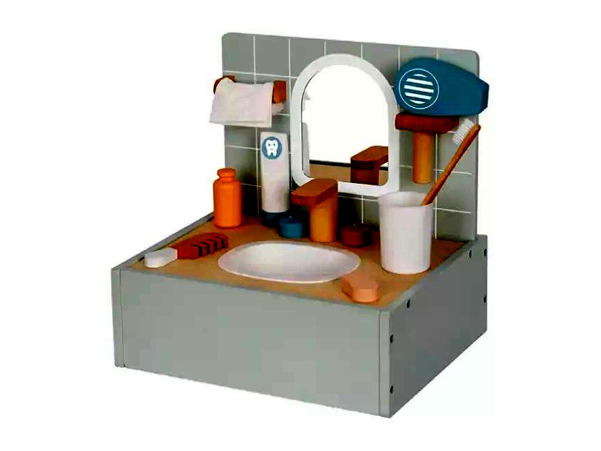 Ez a készlet tartalmaz mindent, amire a gyerekeknek szükségük lehet egy saját kis fürdőszoba kialakításához. A készlet elemei mind fából készültek, ami nemcsak tartósságot, hanem természetes megjelenést is biztosít.