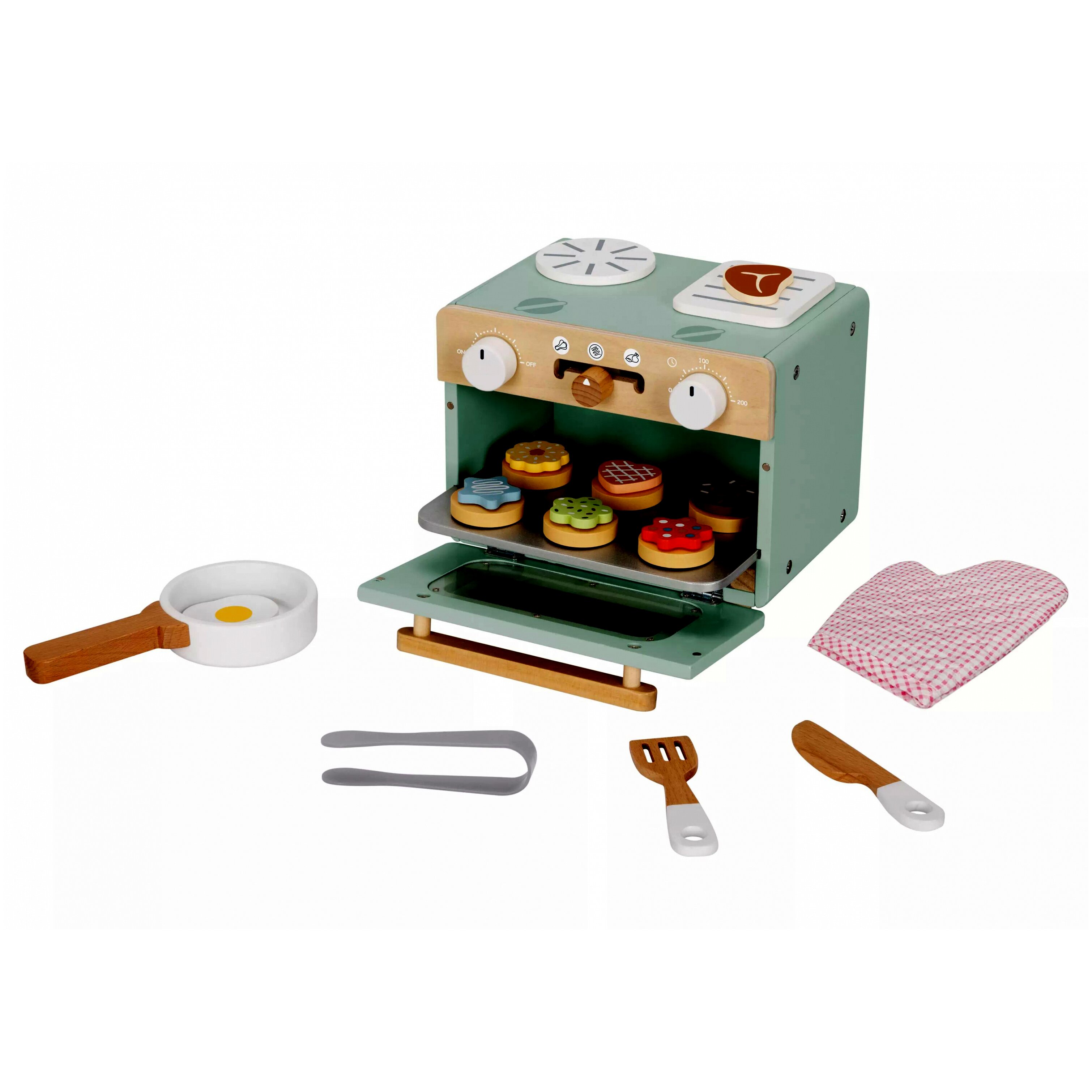 Fedezd fel a sütés örömét a Tooky Toy Játék mini sütő segítségével! Ez a bájos, fából készült játék sütő a kicsik kedvenc konyhai segédeszközévé válhat, miközben fejleszti kreativitásukat és motorikus képességeiket.