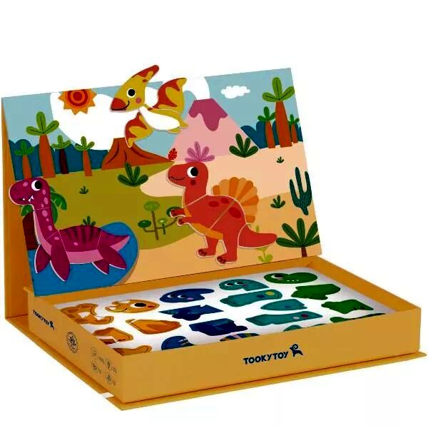 A Tooky Toy mágneses kirakójával 12 különböző dinoszauruszos építhető meg, de az egyes darabokat a gyerekek akár kombinálhatják is, hogy egyedi végeredményt kapjanak. A kicsiknek nincs más dolguk, mint ráhelyezni a megfelelő darabokat a mágneses lapra.
