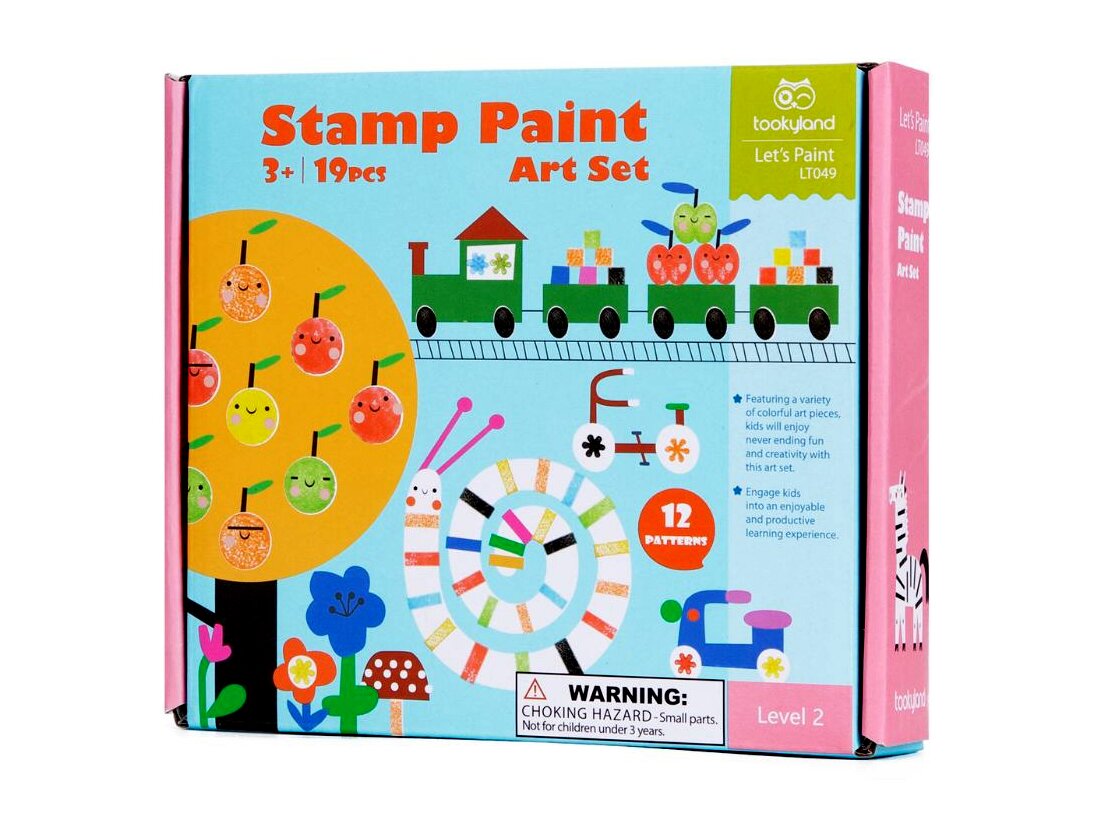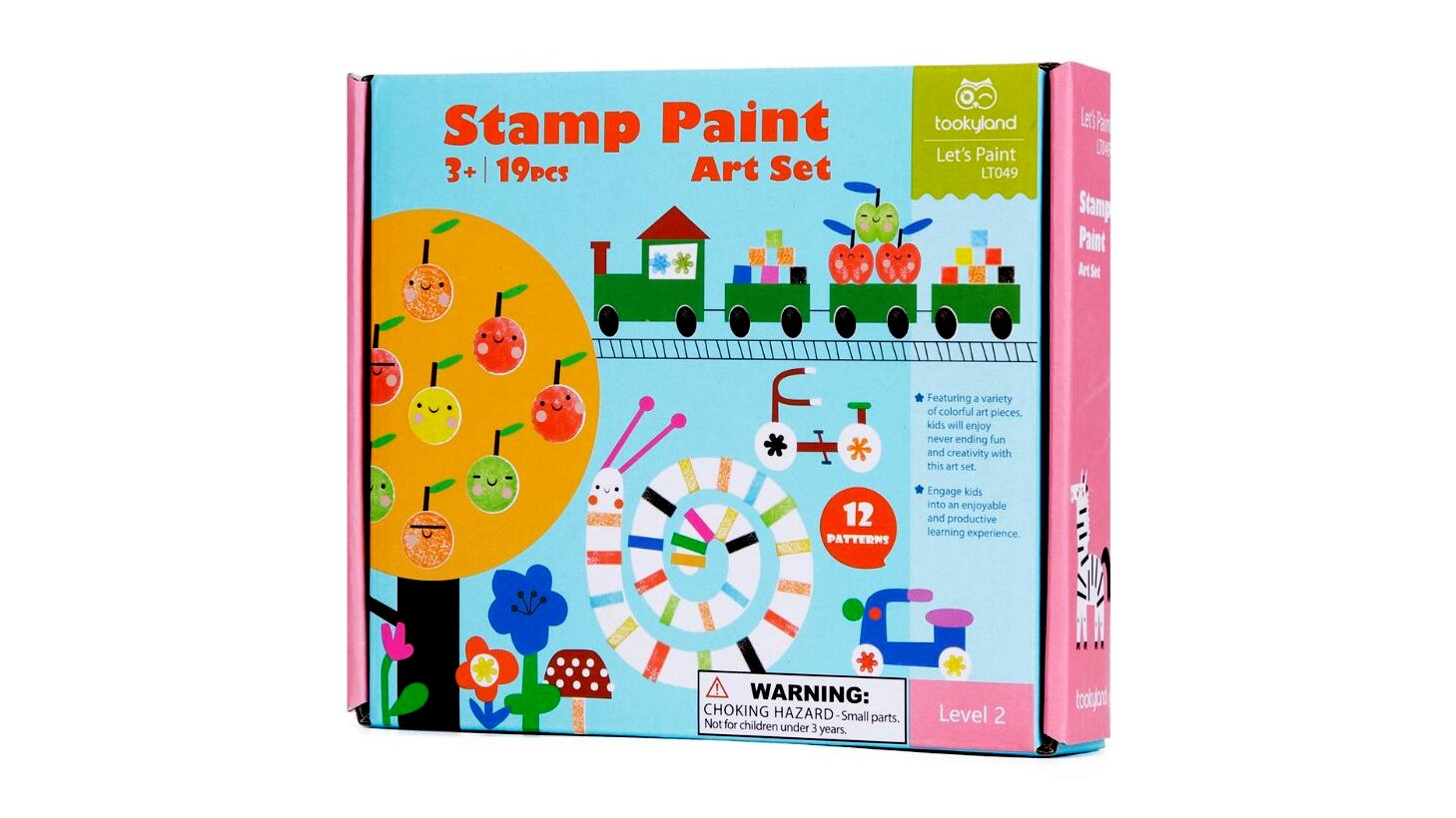 A Tookyland bélyegzőkészlet egy kreatív nyomdázó szett, amellyel a gyerekek különböző formákkal és színekkel készíthetnek képeket, illetve a mellékelt alkotólapok mintáit egészíthetik ki. A csomagban többféle bélyegzőforma és 6 színű tinta segíti a változatos alkotást.