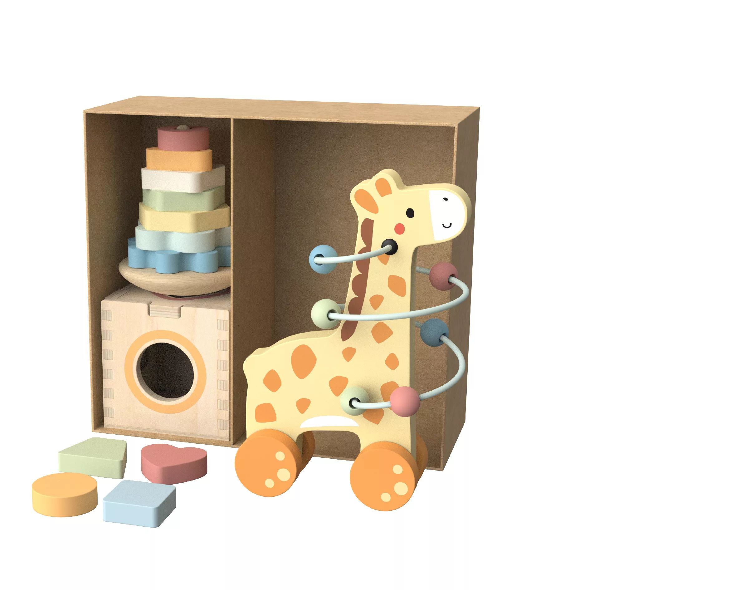 Tooy Toys, 3 az 1-ben doboz fából, Zsiráf