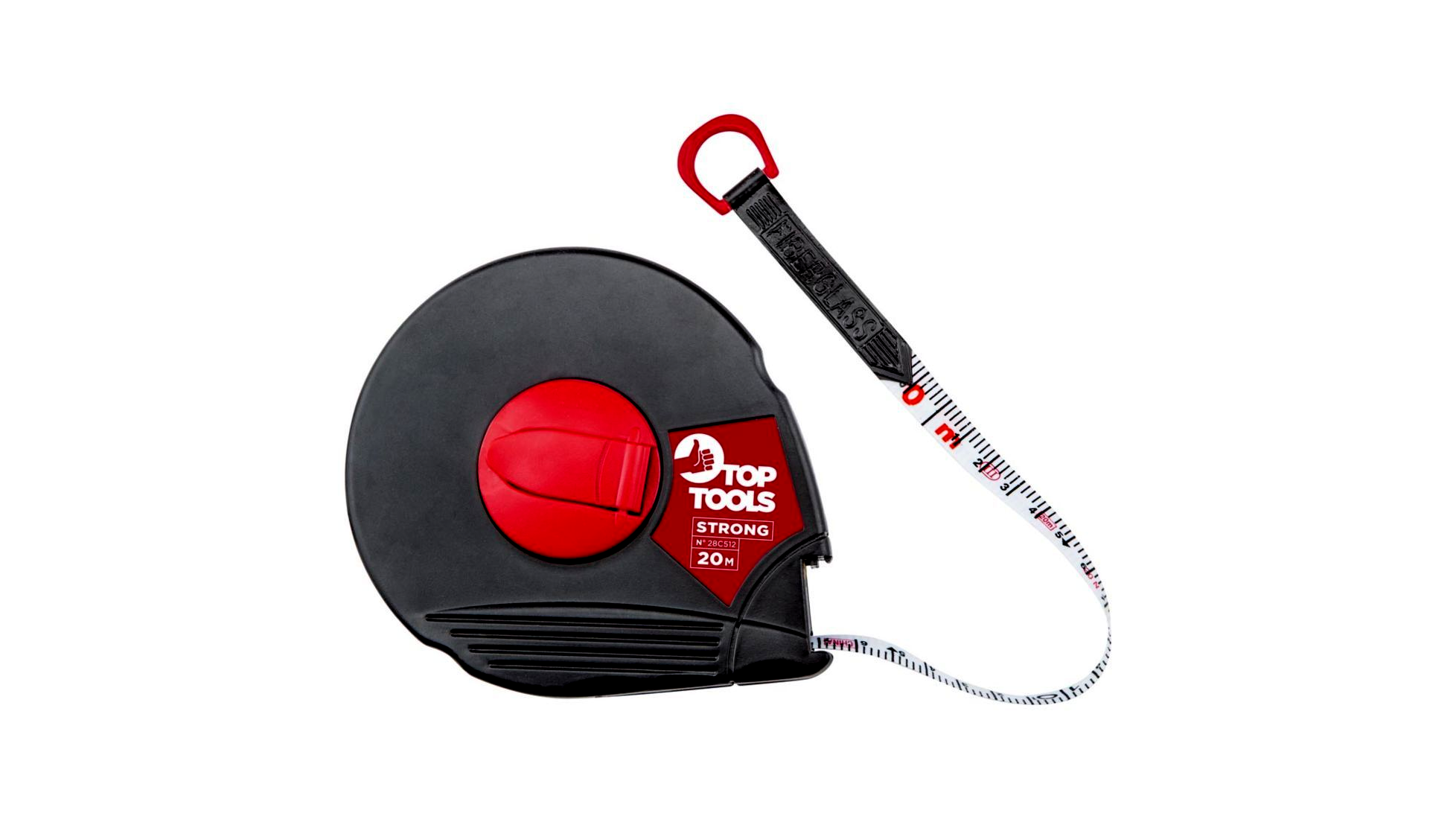 A Top Tools acél mérőszalag strapabíró üvegszálas anyagú, a háza pedig erős műanyagból készül.