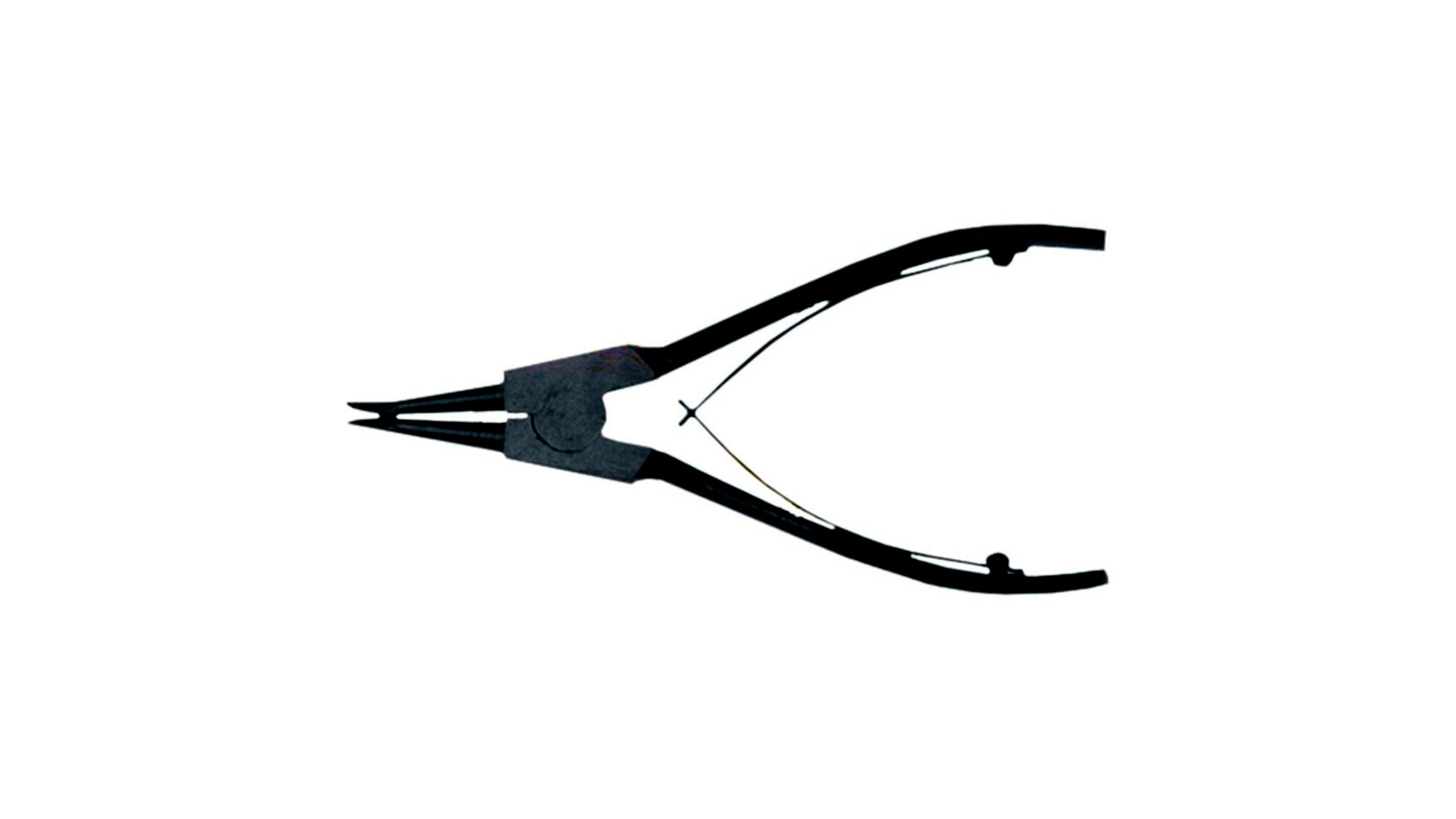 Seegerfogó 150 mm, külső, hajlított egyenes, 12-25 mm‑es gyűrűkhöz, hegyméret: 1,5 mm.