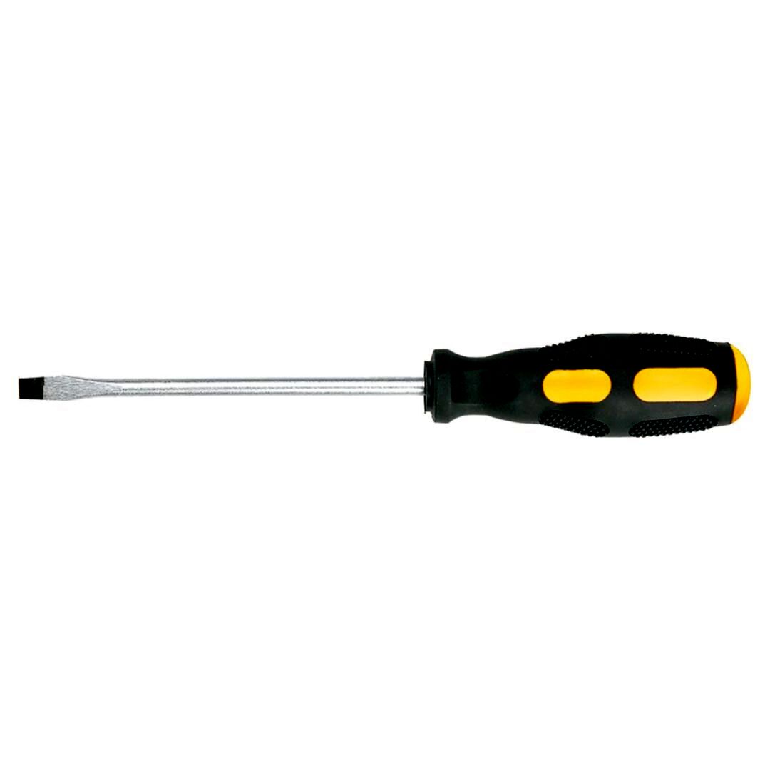 Lapos csavarhúzó, mágneses hegy, CrV acél, bimateriál markolat.