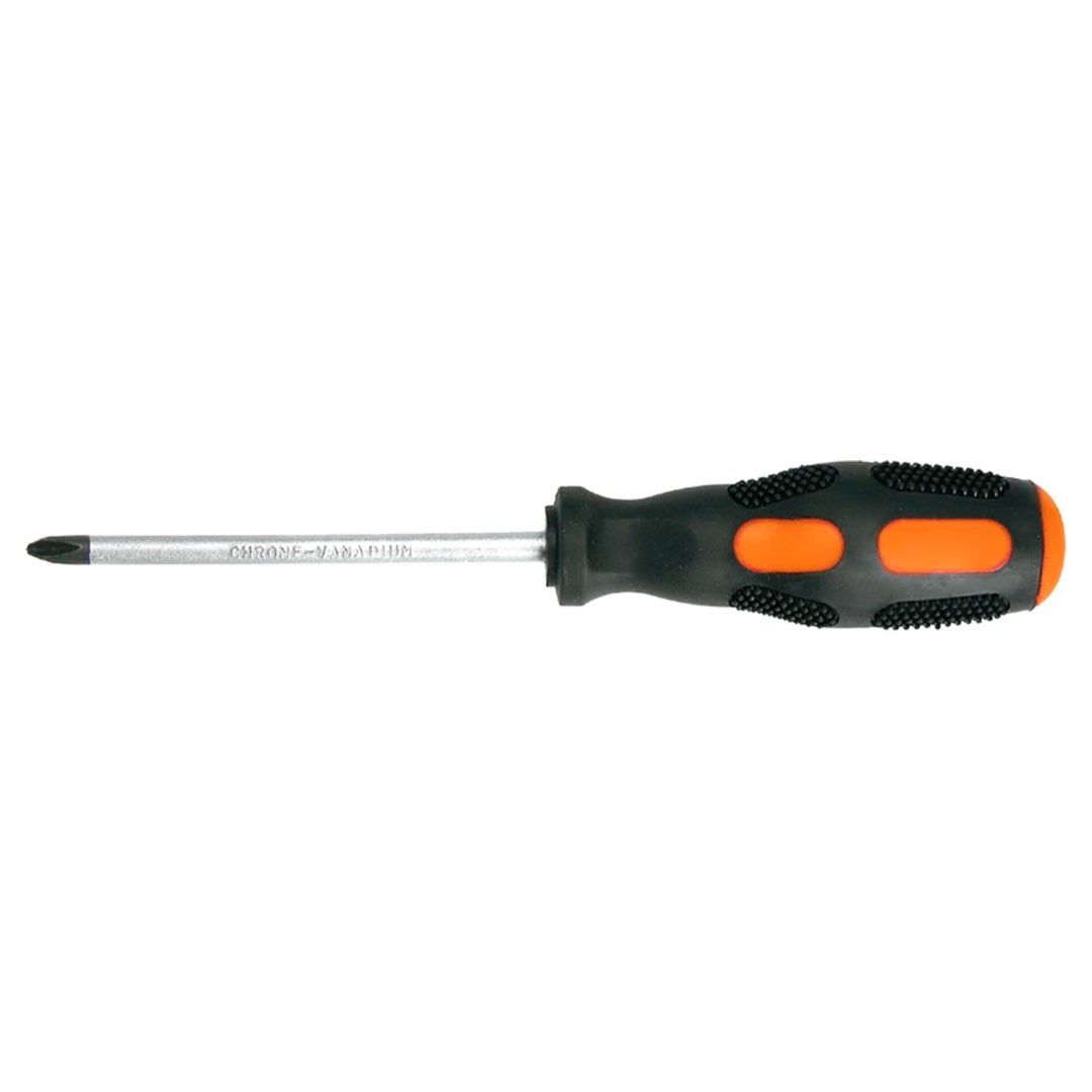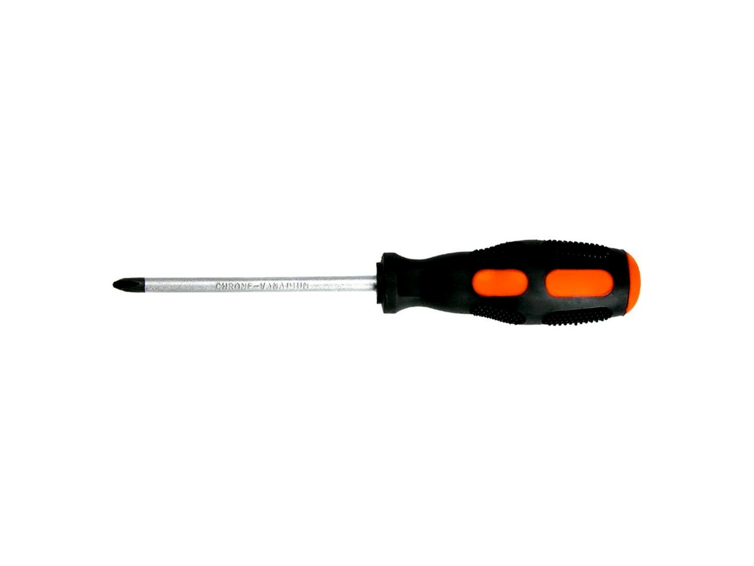 Kereszt csavarhúzó, mágneses hegy, CrV acél, bimateriál markolat.