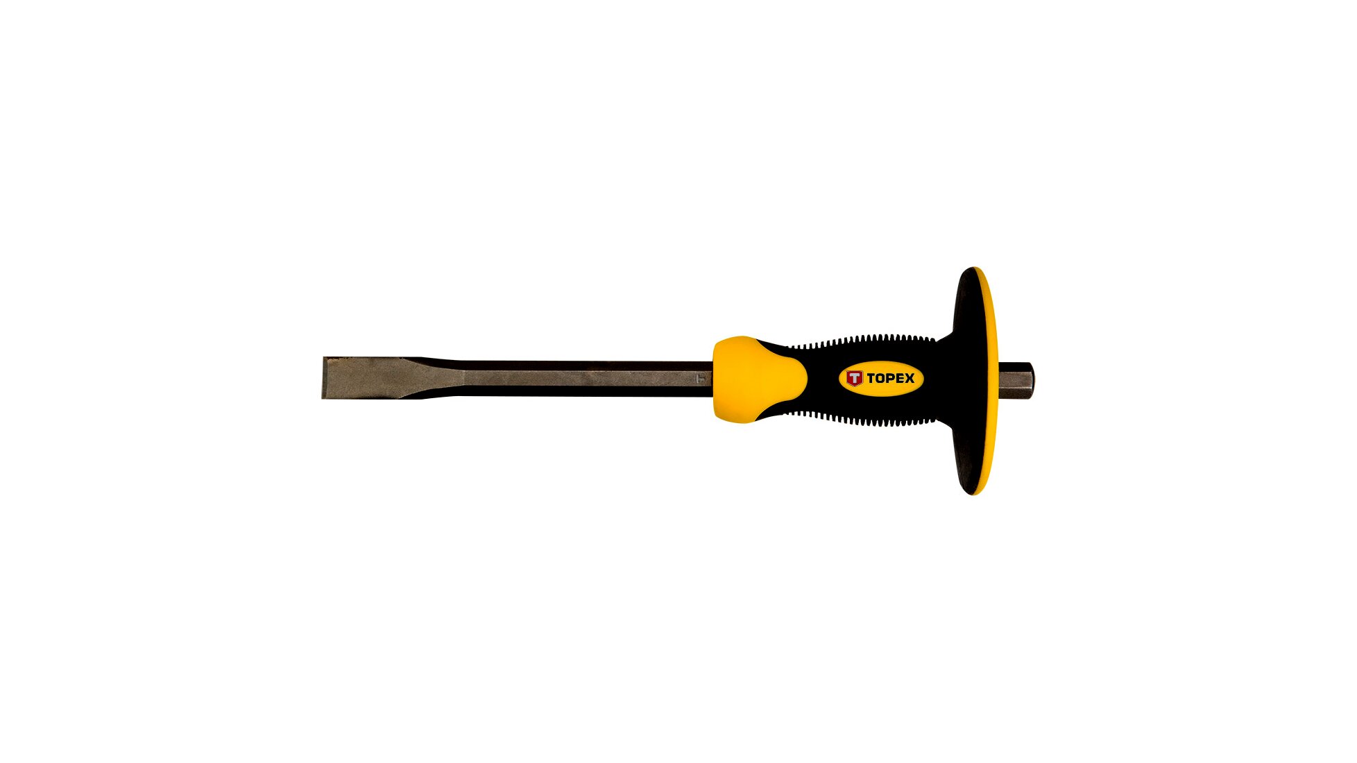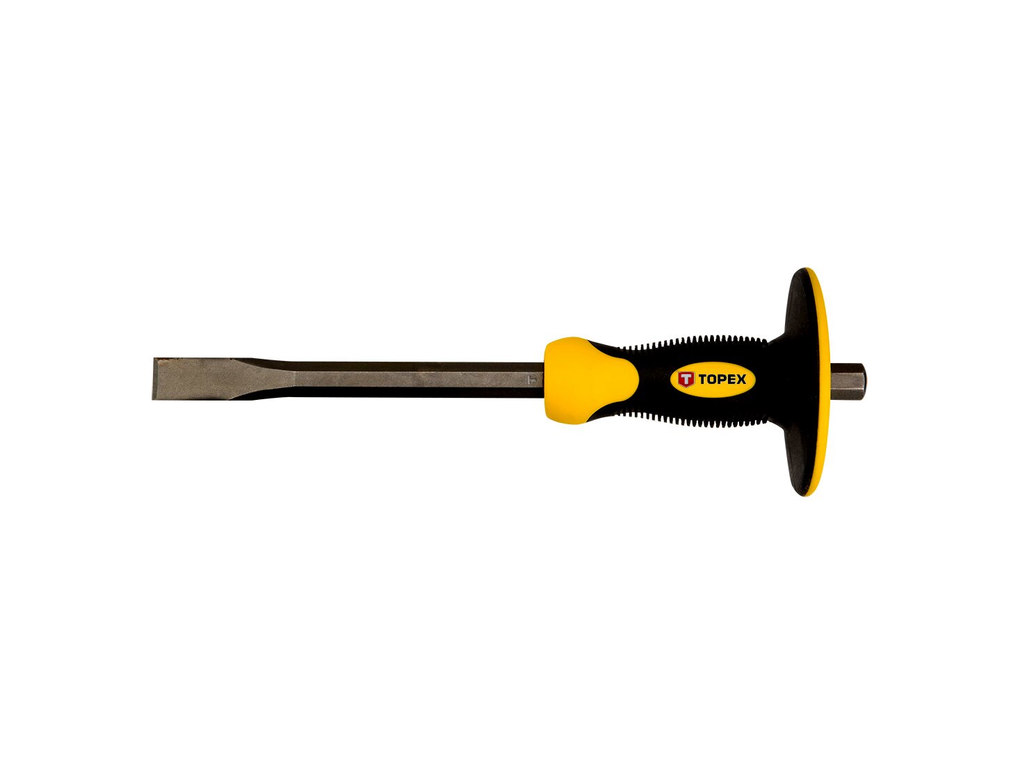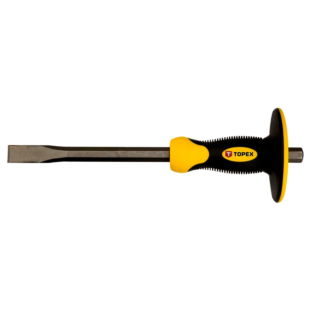 A TOPEX véső kemény anyagok vésésére, zúzására szolgál. Lapos élben végződik, kiváló minőségű, nagy szilárdságú króm-vanádium acélötvözetből készül. A kézből való kicsúszást megakadályozó, a munka kényelmét növelő ergonómikus markolattal. Előnye a kezeket az ütésektől védő kézvédő gallér.