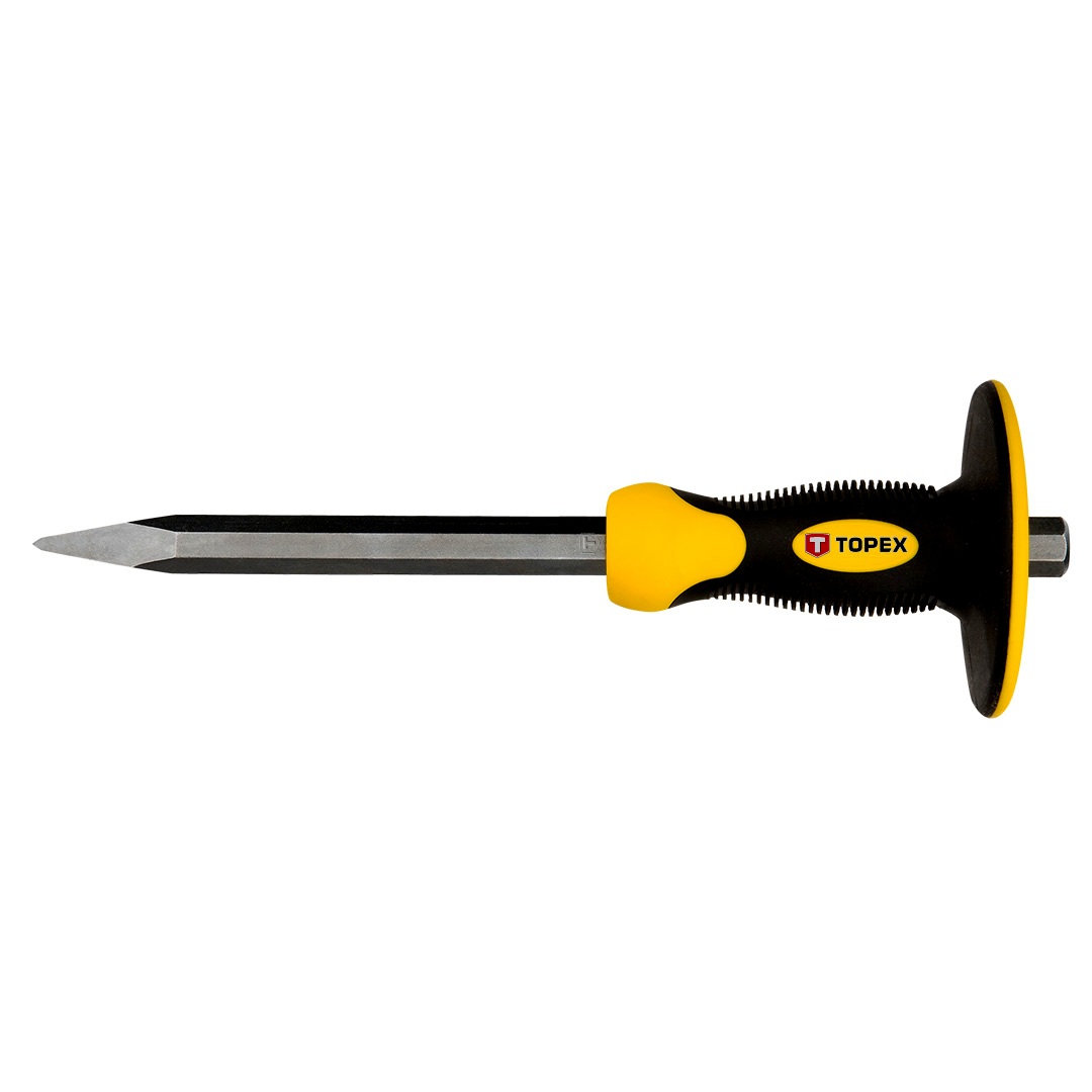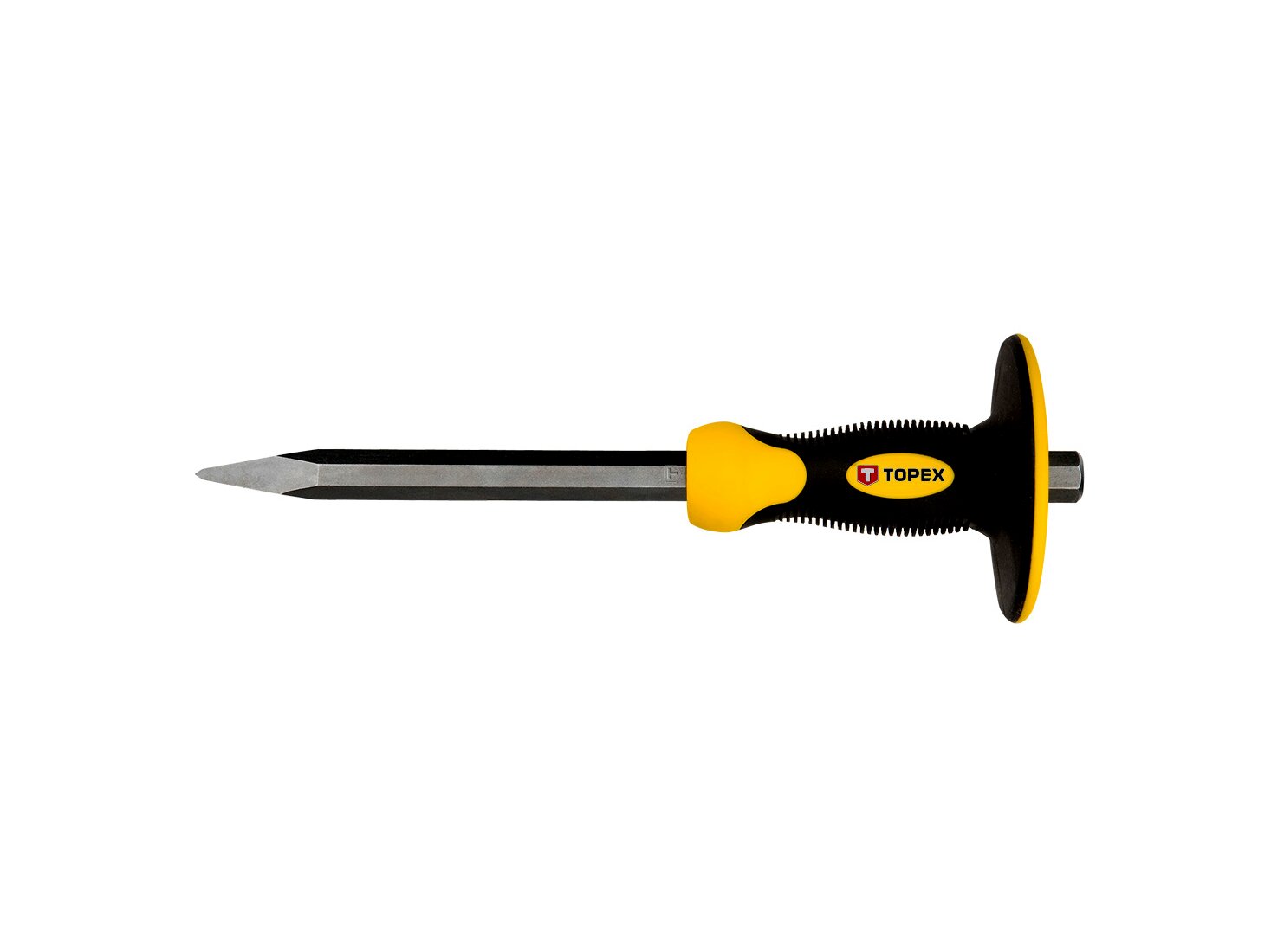 A TOPEX hegyes véső lyukak kézi kivésésére szolgál. Kiváló minőségű, nagy szilárdságú króm-vanádium acélötvözetből készül. A kézből való kicsúszást megakadályozó, a munka kényelmét növelő ergonómikus markolattal. Előnye a kezeket az ütésektől védő kézvédő gallér. A TOPEX márka ezermestereknek készül.