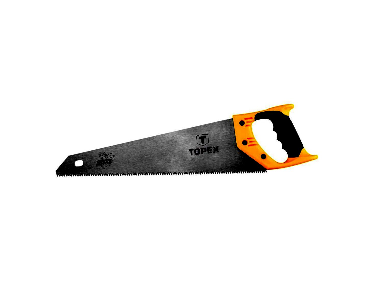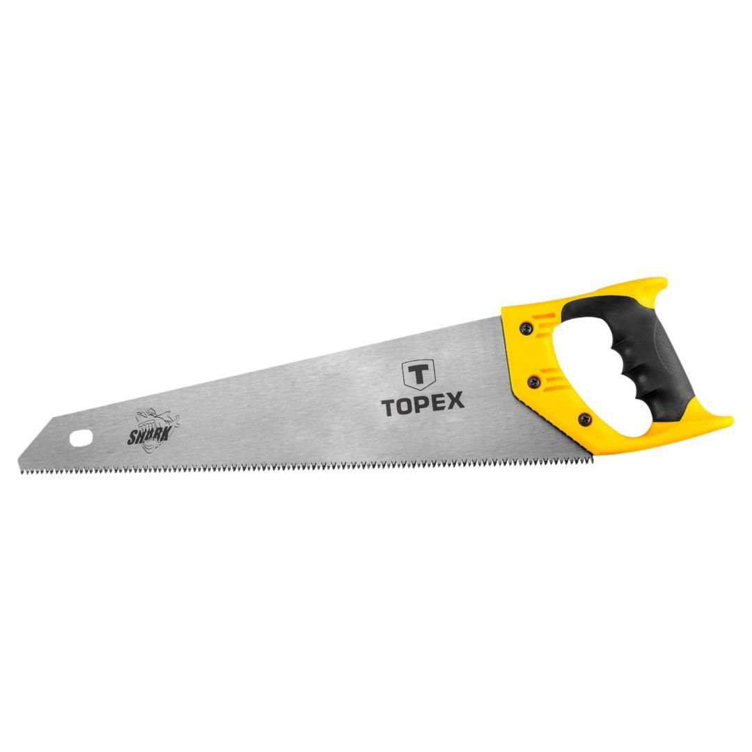 TOPEX Shark rókafarkfűrész (cikkszám. 10A440P) az él hossza 400 mm edzett acélból készül. A fogak edzése és háromsíkú élezése jelentősen csökkenti a vágási ellenállást, és megkönnyíti a fűrészelést szálirányban. A hatékony, collonként 7 db-os fogazás eredményesebbé teszi a munkát. Az ergonómikus dupla anyagú markolat segíti a precíz vezetést, a csúszásmentes bevonat pedig megakadályozza kicsúszását a kézből, biztosítva a kimagasló használati kényelmet. A fűrészhez mellékelt strapabíró szövet tok óvja az élet és megkönnyíti a szerszám tárolását és szállítását. A TOPEX márka ezermestereknek készül.