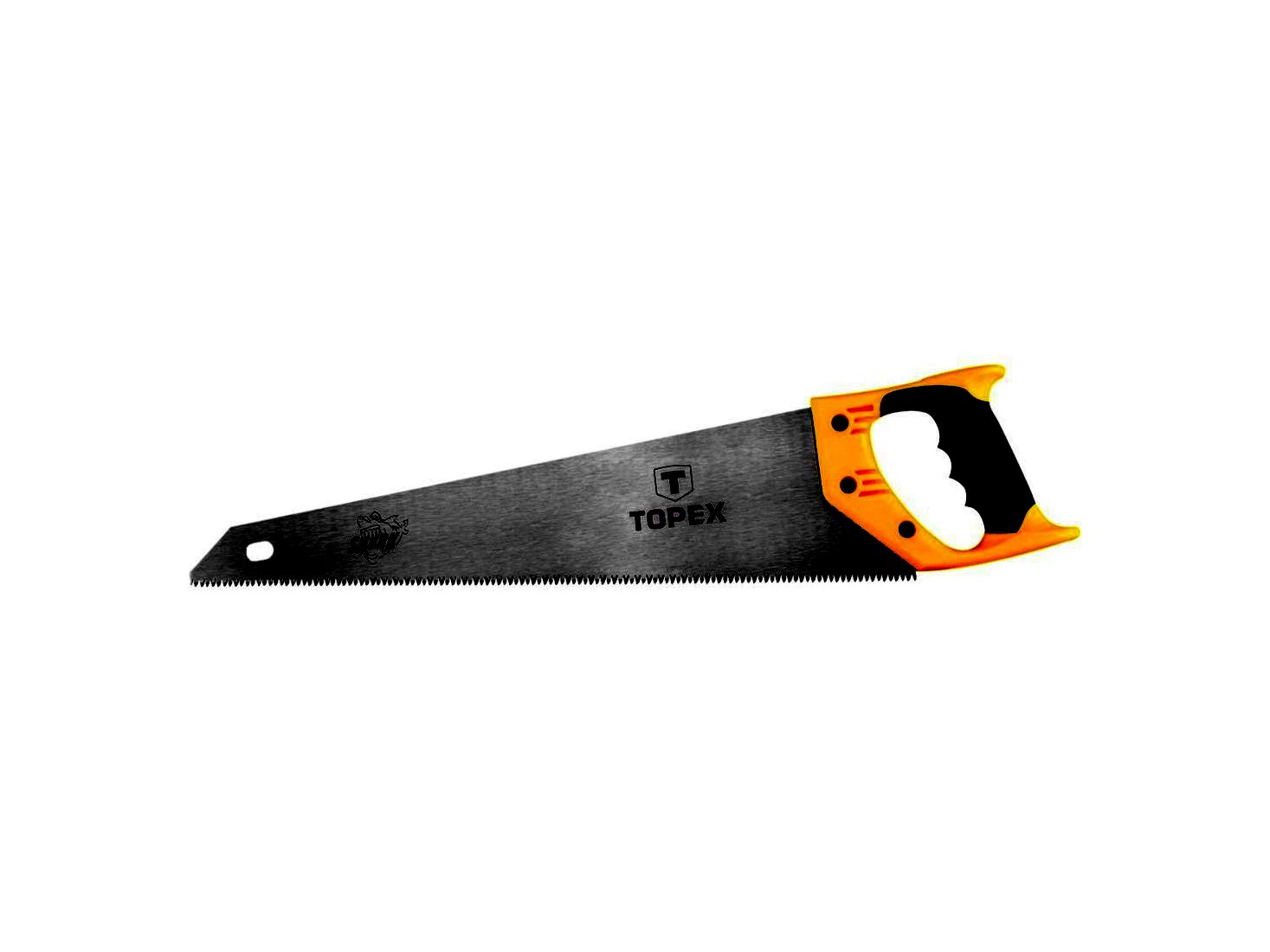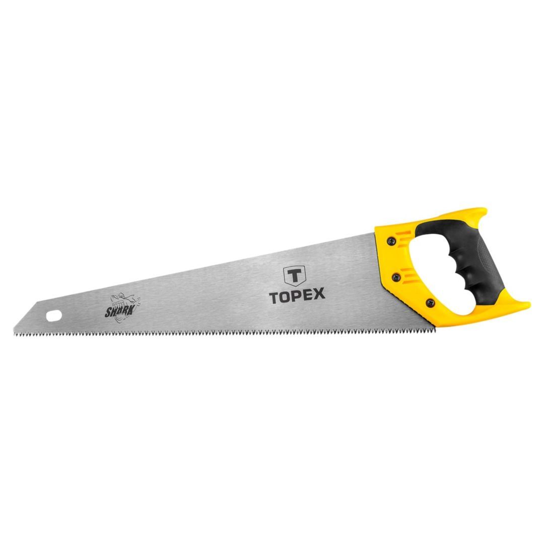 TOPEX Shark rókafarkfűrész az él hossza 400 mm edzett acélból készül. A fogak edzése és háromsíkú élezése jelentősen csökkenti a vágási ellenállást, és megkönnyíti a fűrészelést szálirányban. A hatékony, collonként 7 db-os fogazás eredményesebbé teszi a munkát. Az ergonómikus dupla anyagú markolat segíti a precíz vezetést, a csúszásmentes bevonat pedig megakadályozza kicsúszását a kézből, biztosítva a kimagasló használati kényelmet. A fűrészhez mellékelt strapabíró szövet tok óvja az élet és megkönnyíti a szerszám tárolását és szállítását. A TOPEX márka ezermestereknek készül.