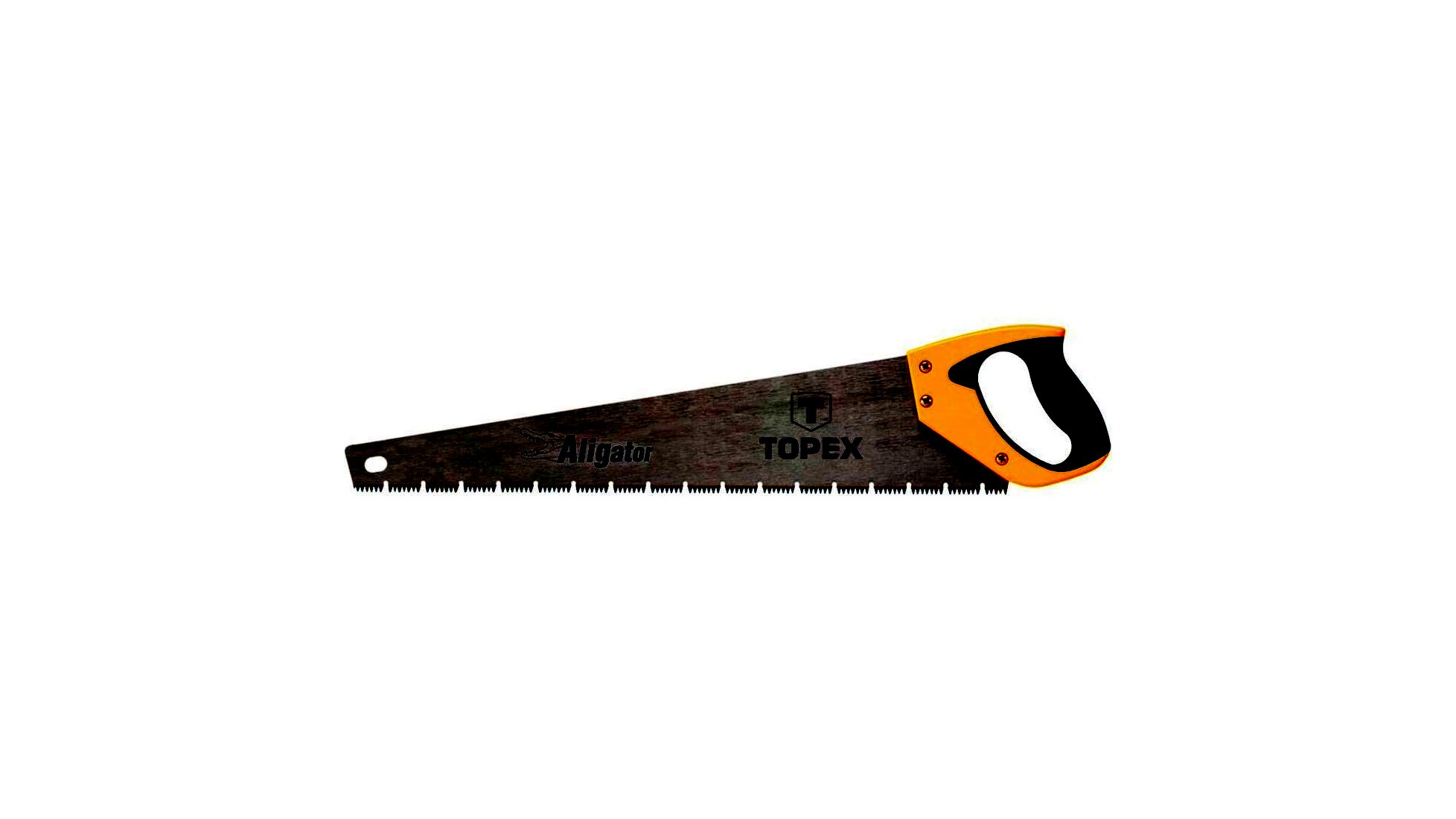 TOPEX Aligator rókafarkfűrész. A fogak edzése és háromsíkú élezése jelentősen csökkenti a vágási ellenállást, és megkönnyíti a fűrészelést szálirányban. A hatékony, collonként 7 db-os fogazás eredményesebb megmunkálást tesz lehetővé. Megkülönbözteti a gyors vágást lehetővé tevő különleges szerkezete. Az ergonómikus bimateriál markolat segíti a precíz vezetést, a csúszásmentes bevonat pedig megakadályozza kicsúszását a kézből, jelentősen javítva a használati kényelmet. A TOPEX márka ezermestereknek készül.