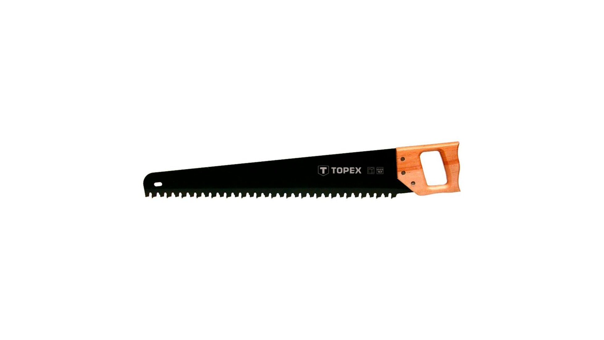 TOPEX pórusbeton fűrész 600 mm hosszú fűrészlappal. 34fogú lap, 17 vídiabetétes fog jellemzi. Az erős fából készült, profilírozott markolat preciz vezetést biztosit. A TOPEX márka ezermestereknek készül.