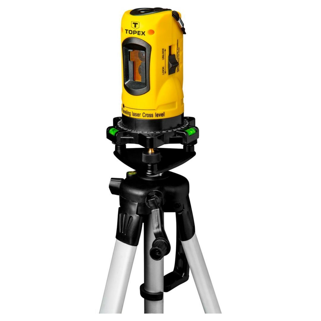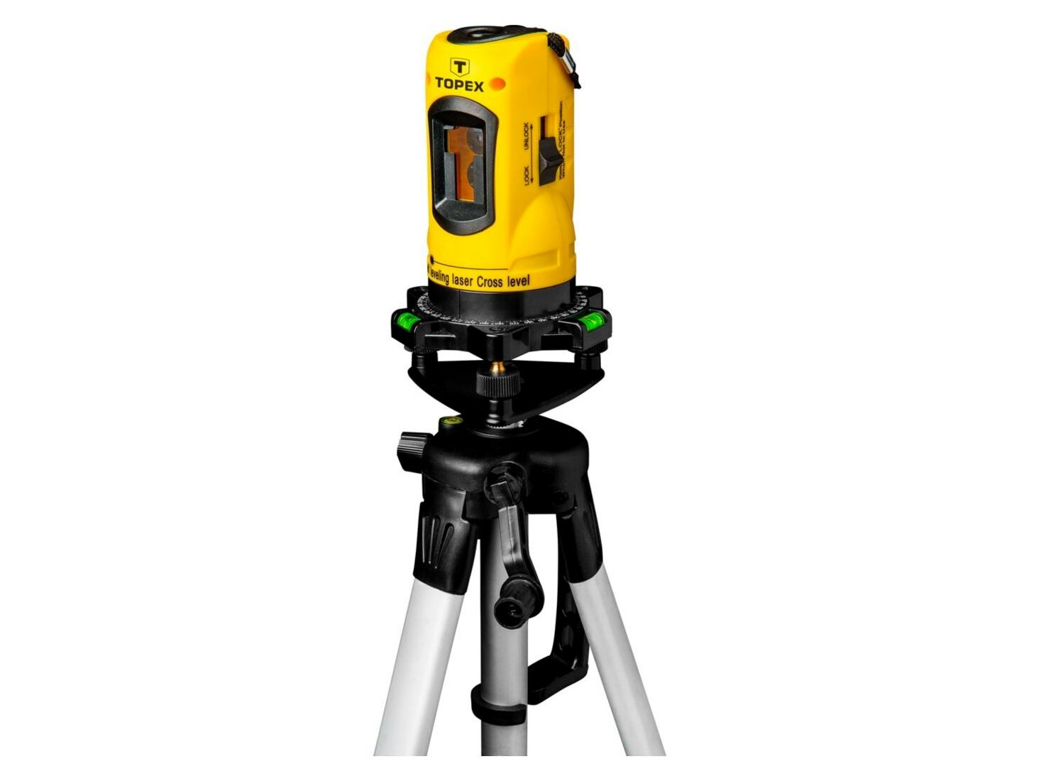 TOPEX önvízszintező lézeres vízszintező 650 nm hullámhosszúságú lézerrel és <6° vízszintezési tartománnyal.