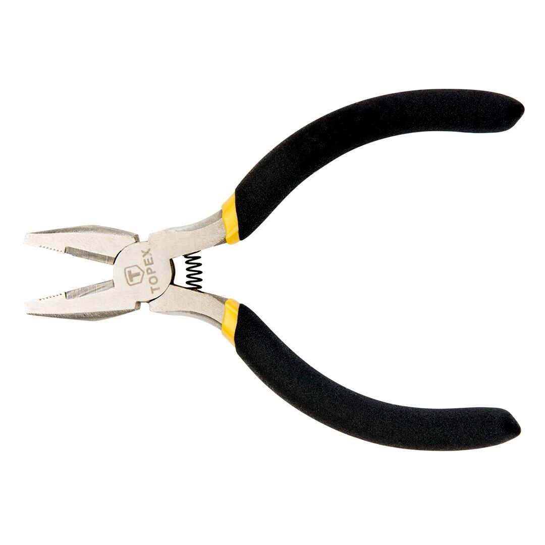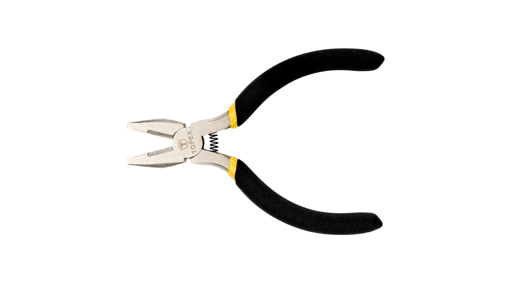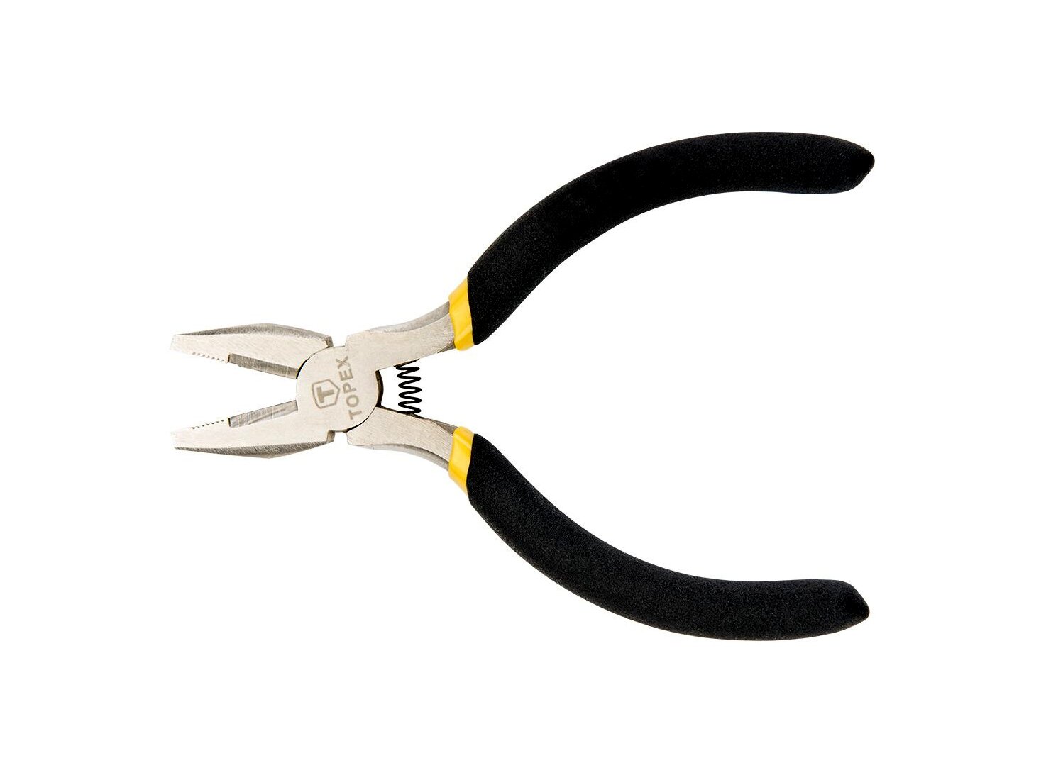 TOPEX 115 mm-es műszerész kombináltfogó. Edzett acélból készült, a vágófelületek ezen kívül indukciós edzést is kaptak. Az ergonómikus, csúszásmentes anyaggal bevont markolat biztosítja a kényelmet és a biztonságot a munkavégzés során. A termék tökéletesen illeszkedik a kéz alakjához. A fogó a karok alaphelyzetbe visszaállását biztosító visszatérítő rugóval felszerelt, ami javítja a termék használati kényelmét. A TOPEX márka ezermestereknek készül.